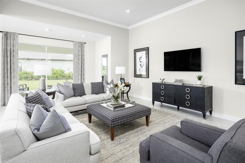Welcome home to the Patterson, where Florida living gets an upgrade! This isn’t your average home – we’re talking about soaring 11’ ceilings that will make your Great Room feel like a palace. Picture yourself hosting the ultimate indoor-outdoor party, with massive sliding glass doors that transform your spacious 24’4” Lanai into an extension of your living space. The showstopper? A chef’s dream kitchen featuring a massive 9’9” island perfect for everything from Sunday meal prep to Friday night pizza parties. With four bedrooms (including a luxurious Owner’s Suite that feels like a 5-star resort) and the option to turn one bedroom into the home office of your dreams, The Patterson isn’t just a house – it’s your ticket to living the sweet life, Florida style!