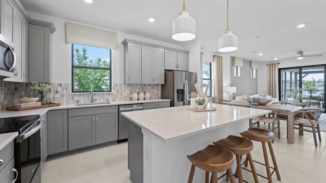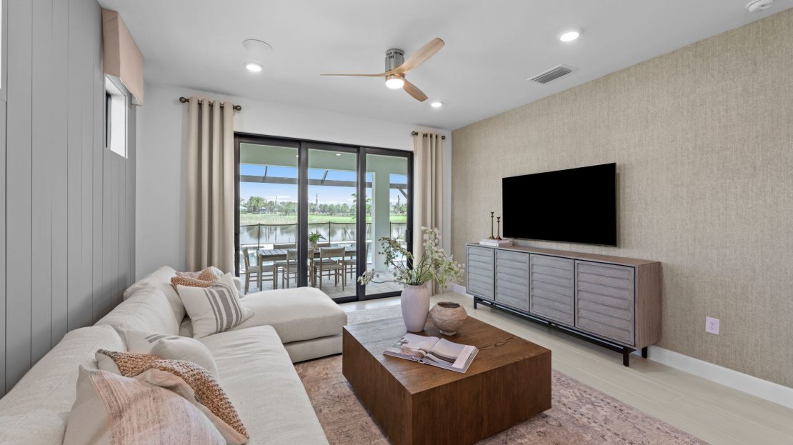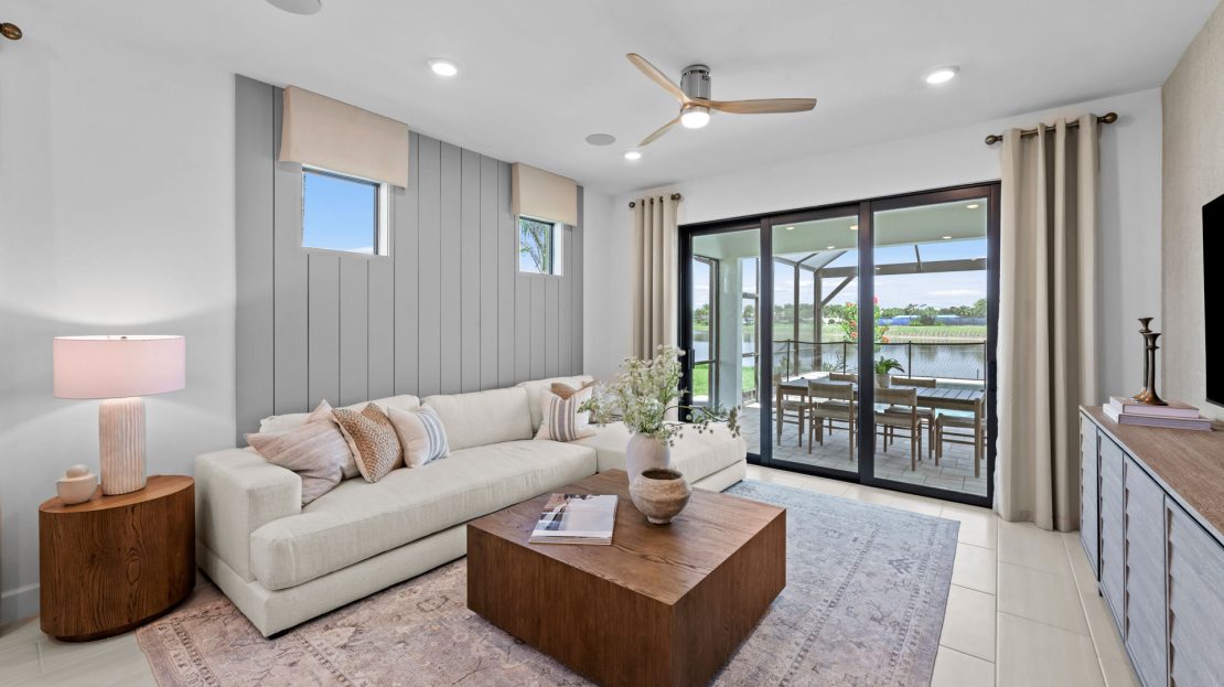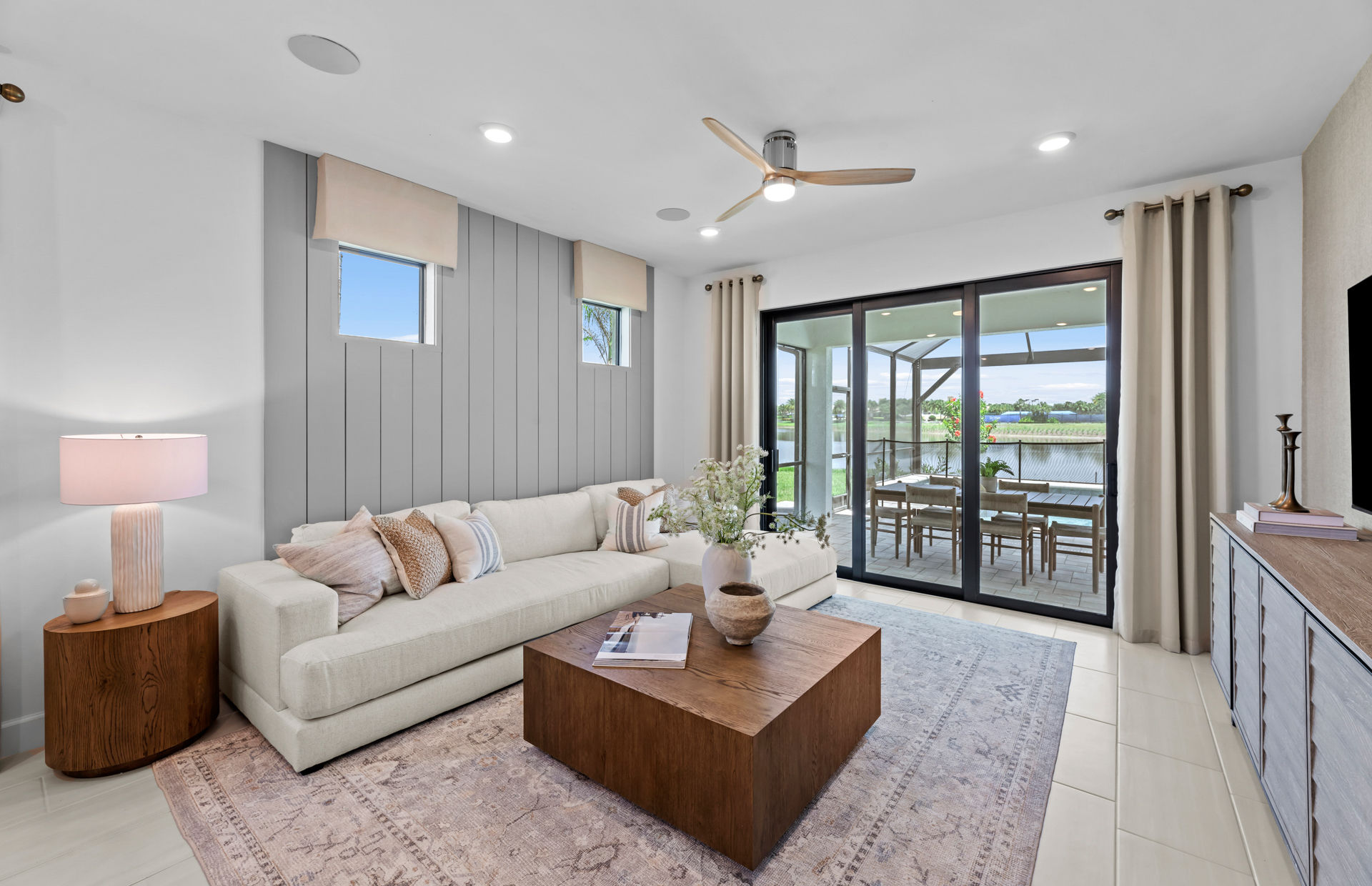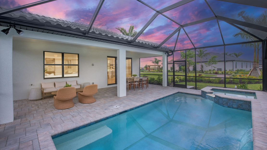 Villa home in Del Webb Naples. With 2 bedrooms, 2 bathrooms, a 2 car garage, and 1405 square feet of living space, you and your family will have all the room you need. One look at this The Contour features ample entertaining spaces, an optional den, two bedrooms, and a connected gathering room, café, and kitchen.