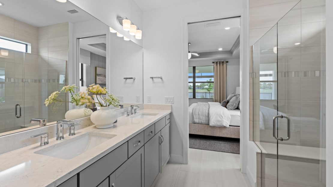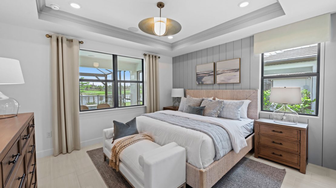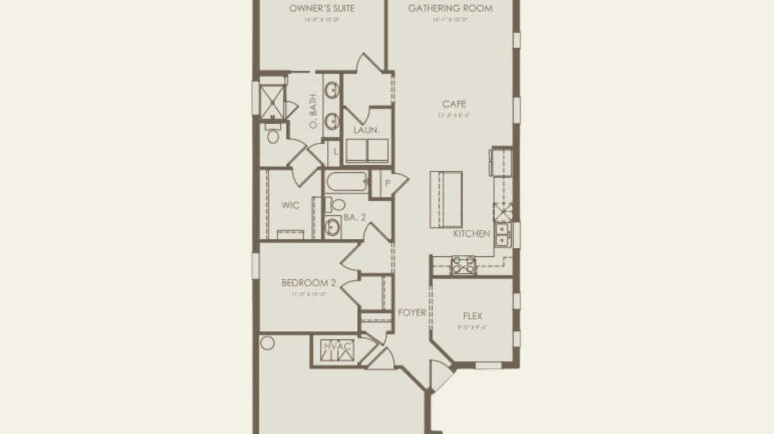 Contour Model at Del Webb Naples in Ave Maria, Florida built by Pulte. Floorplan with 2 beds, 2 baths, 1405 sqft priced from $368990