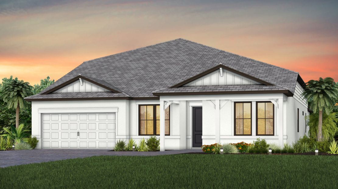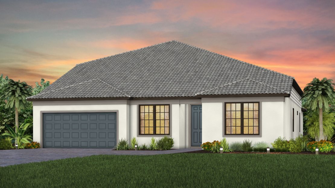 Easley Grande Model at Gatherpoint in Ave Maria, Florida built by Pulte. Floorplan with 5-6 beds, 3.5-5 baths, 4194 sqft priced from $669990