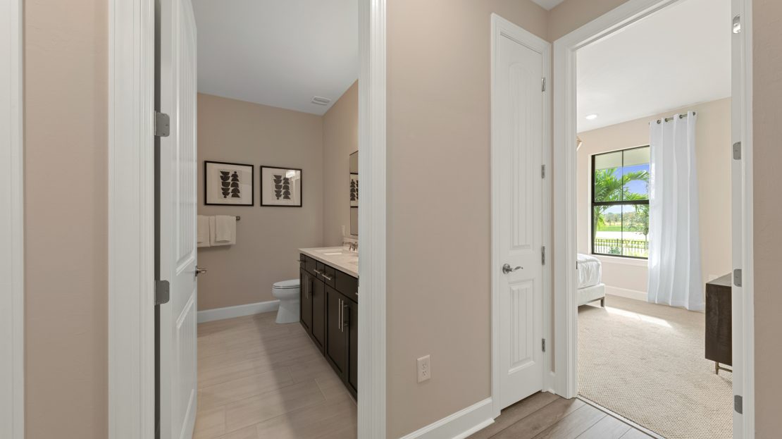 Easley Model at Gatherpoint in Ave Maria, Florida built by Pulte. Floorplan with 3-4 beds, 2.5-4.5 baths, 2685 sqft priced from $489990