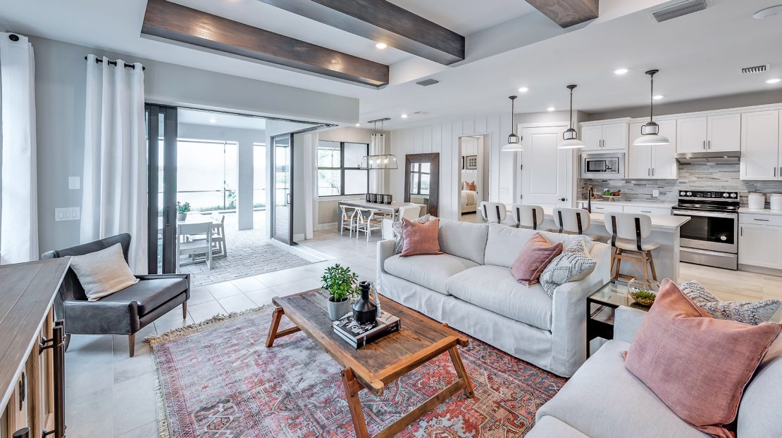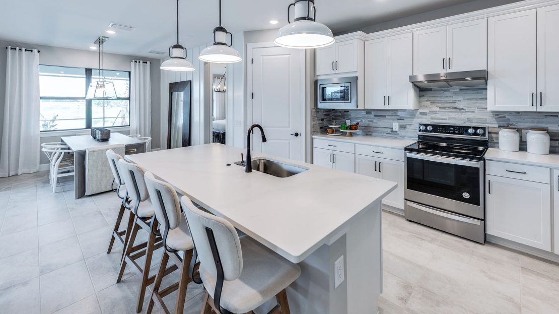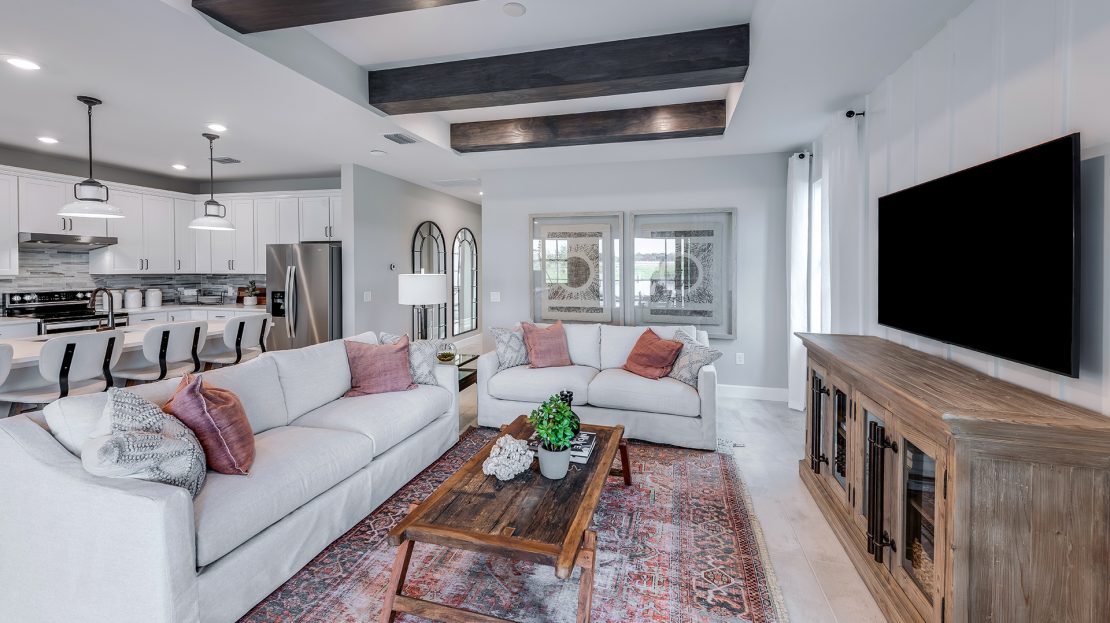 The Mystique Grande is a versatile new construction floor plan that offers 3-5 bedrooms, well-suited for family time and entertaining. The beautiful 2-story home design with an upstairs loft features an open kitchen with center island that overlooks a bright gathering room, perfect for entertaining and everyday living.
