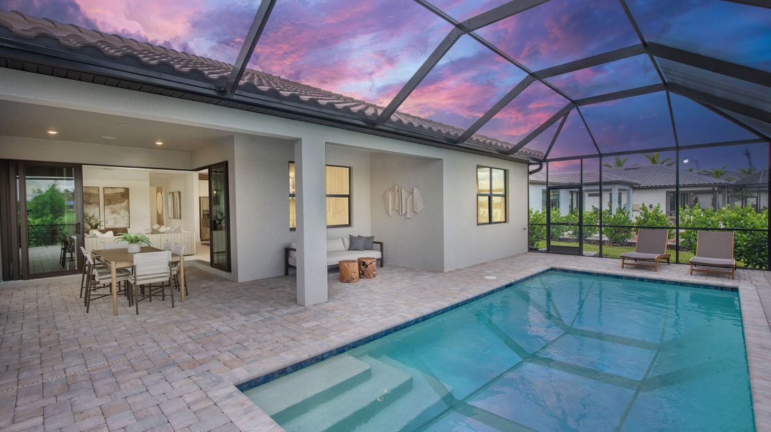 Villa home in Del Webb Naples. With 2-5 bedrooms, 2-4 bathrooms, a 2 car garage, and 1889 square feet of living space, you and your family will have all the room you need. One look at this The Mystique features a private owner’s suite and covered lanai for outdoor entertaining, as well as an optional den.