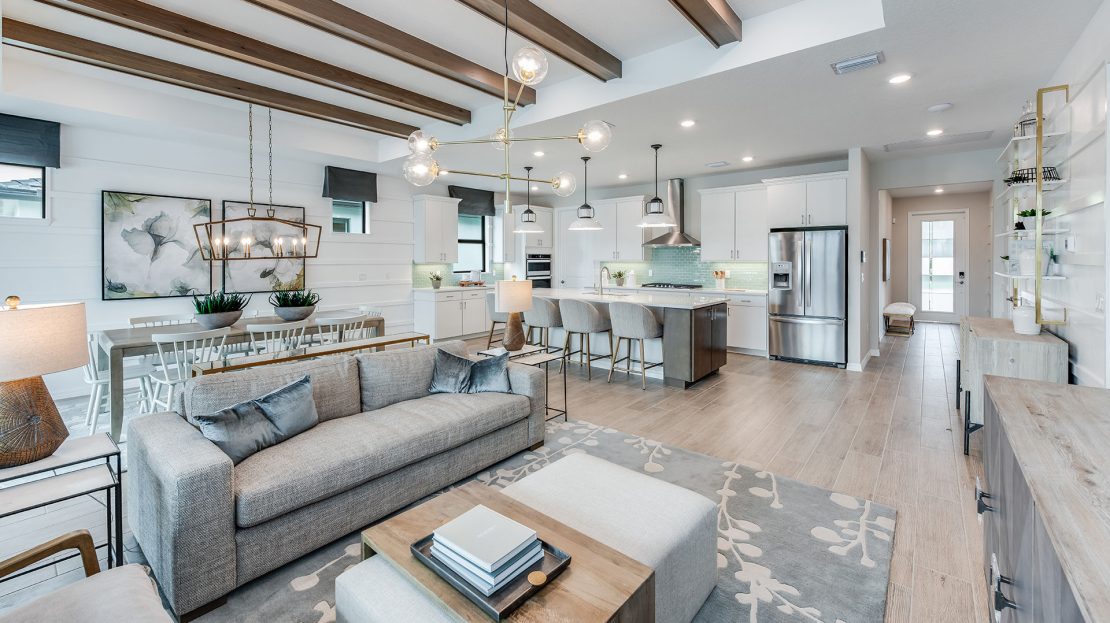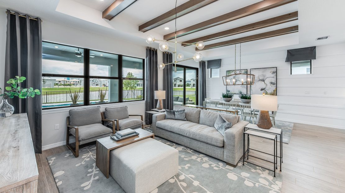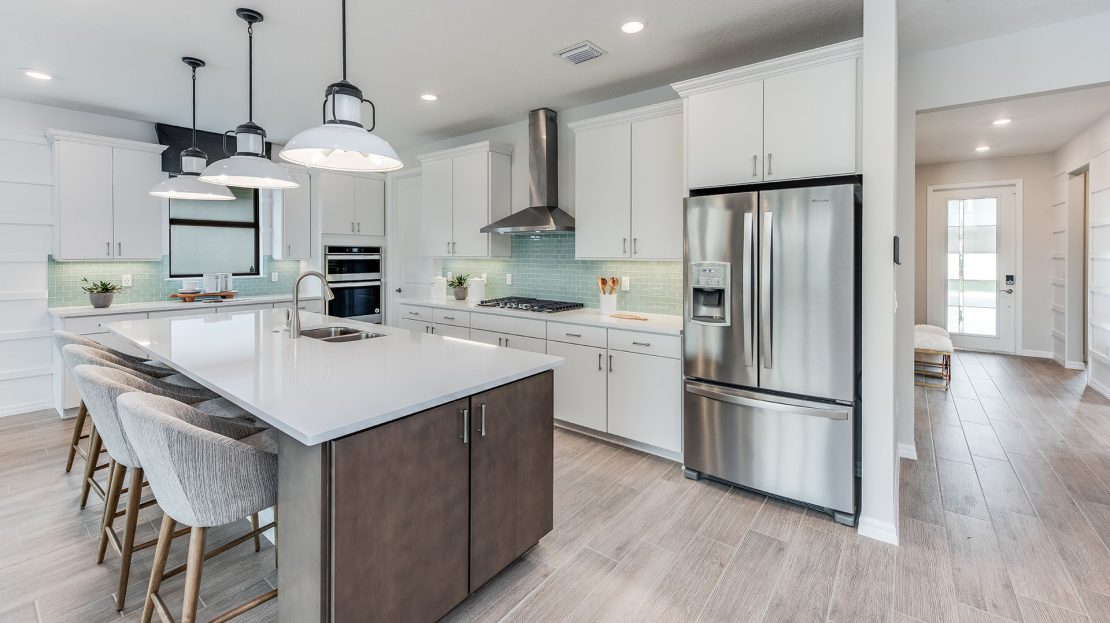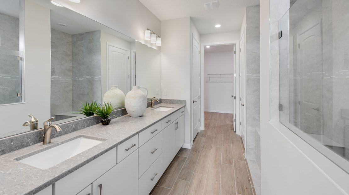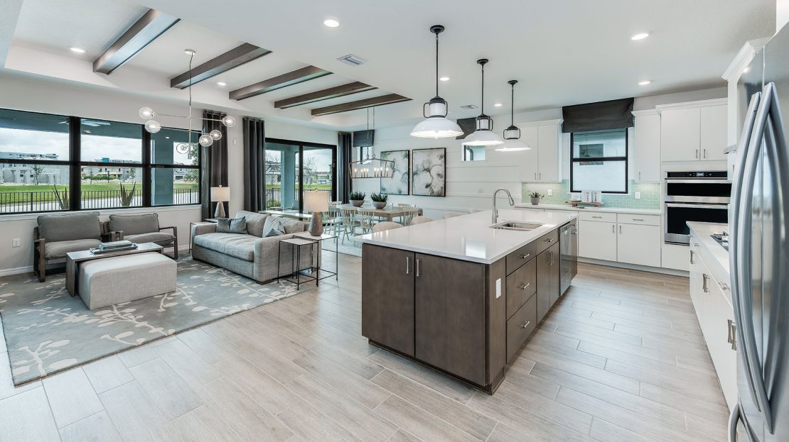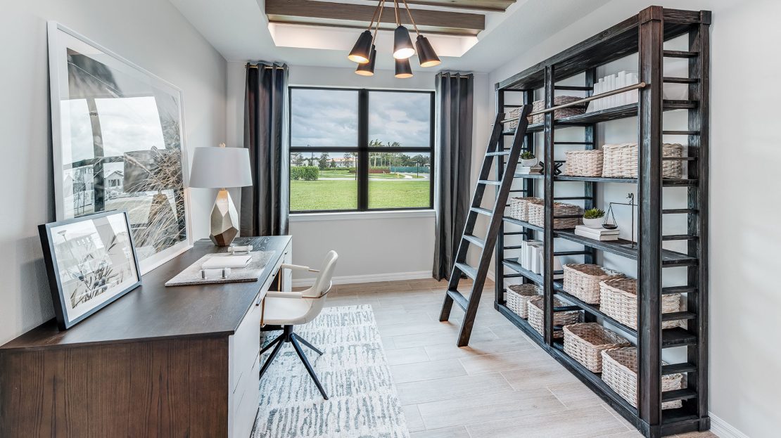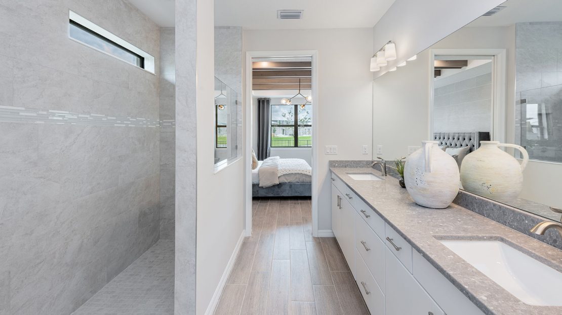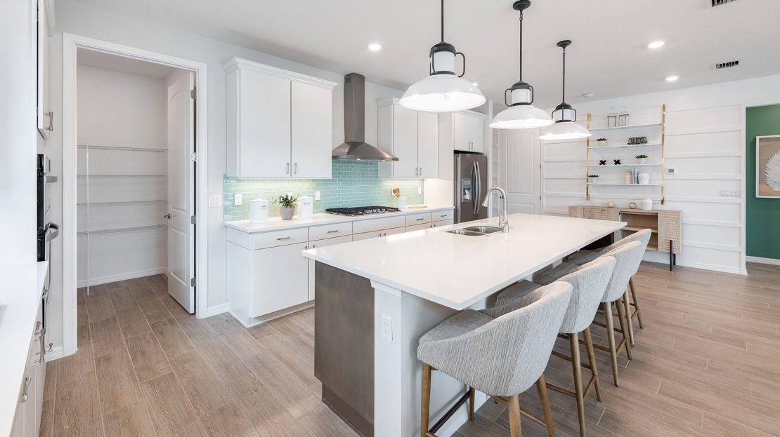 The Palmary is filled with open living areas. The spacious gathering room flows seamlessly into the kitchen, which includes a large pantry and center island, making this space both elegant and functional. A flex room off the foyer could be an office, den, or additional bedroom.