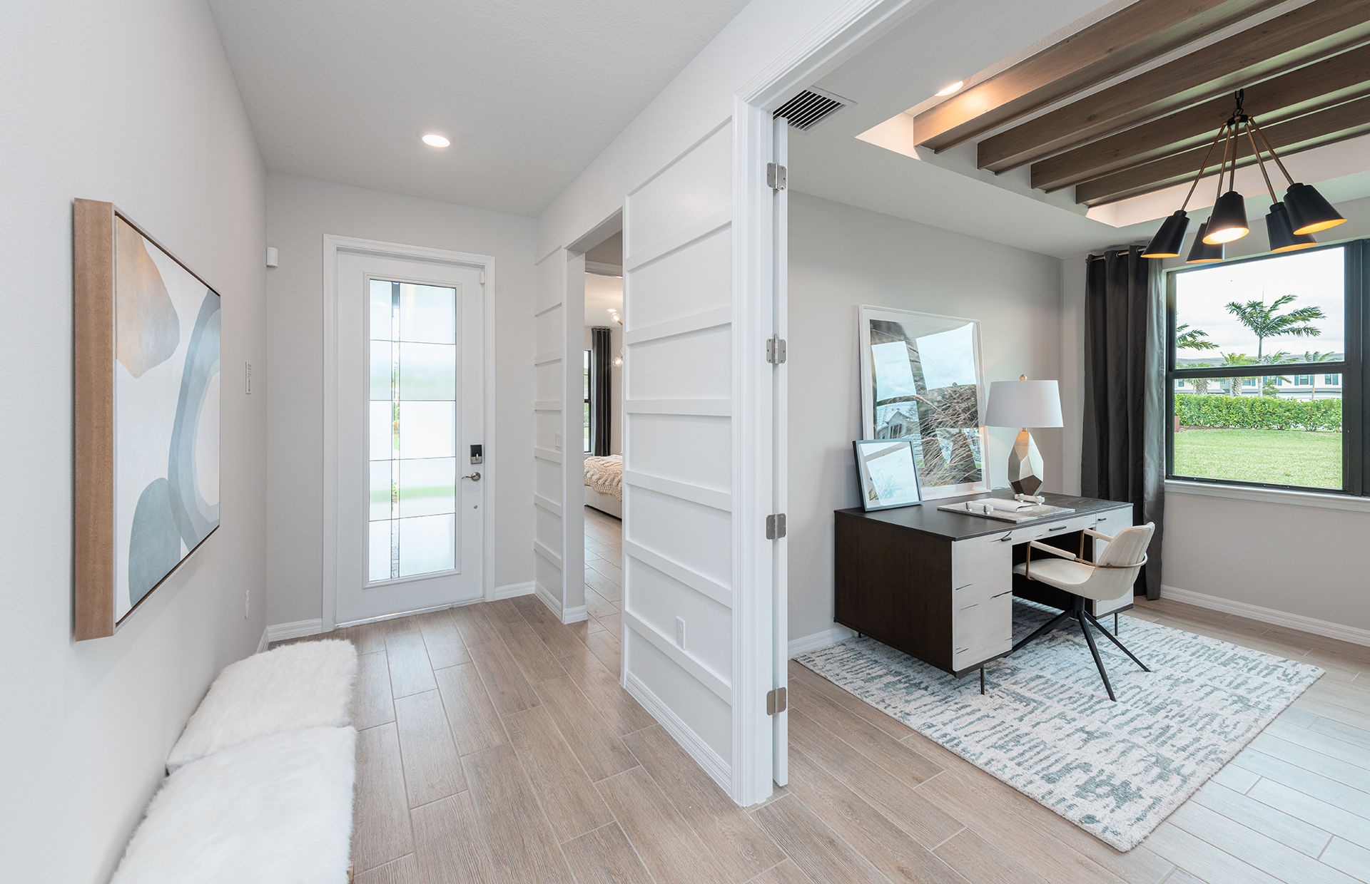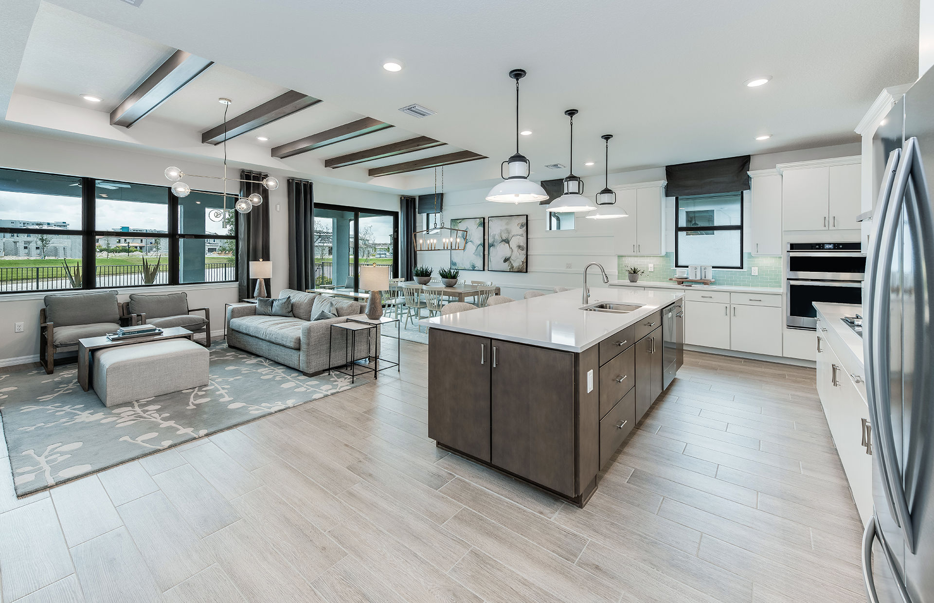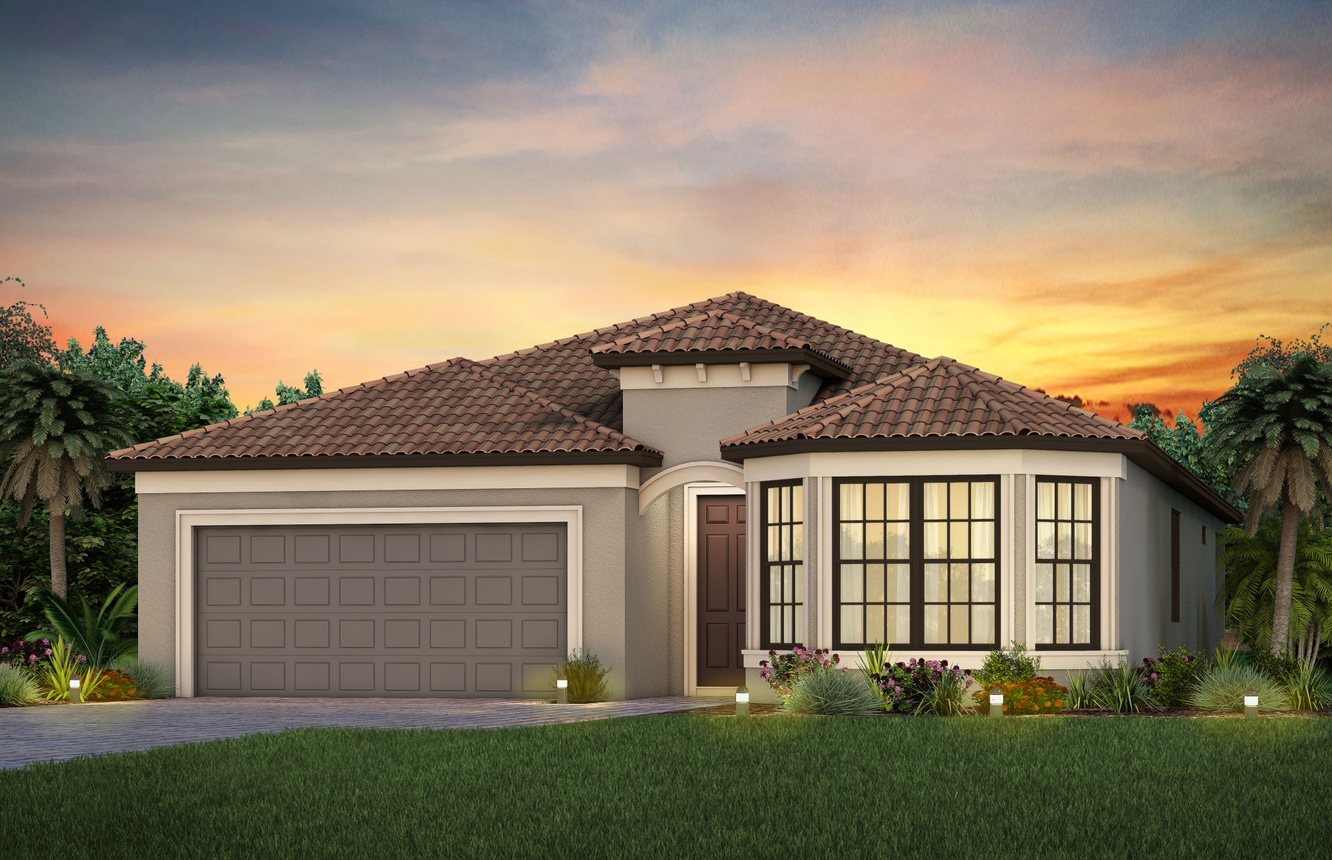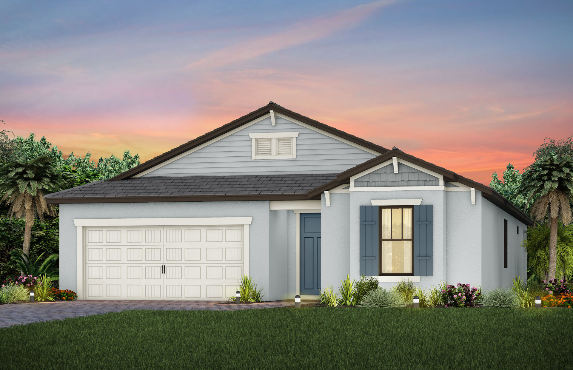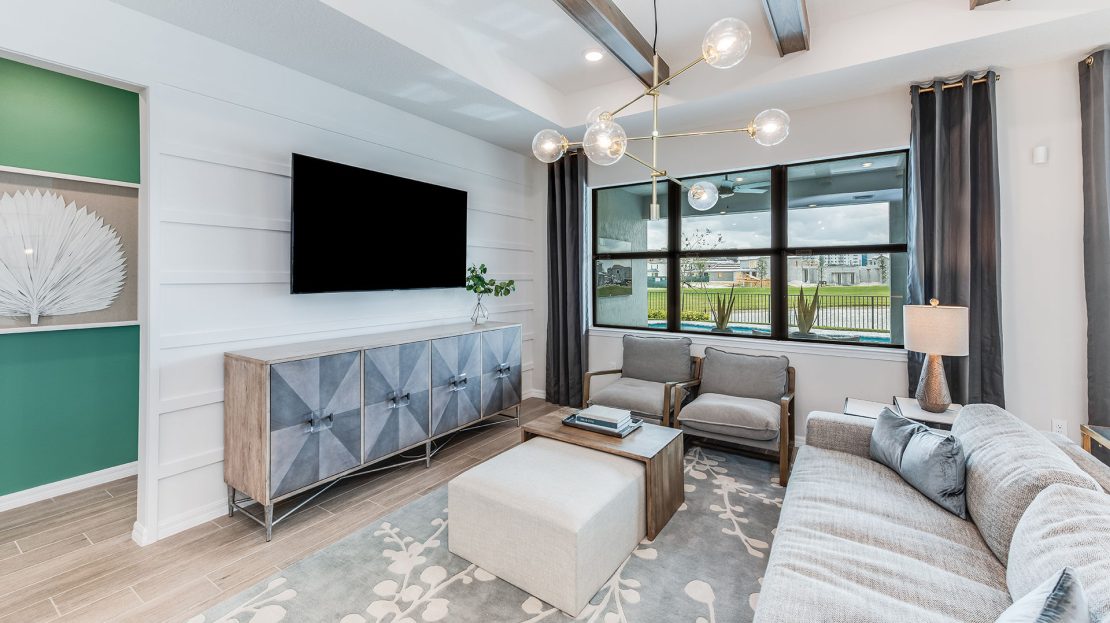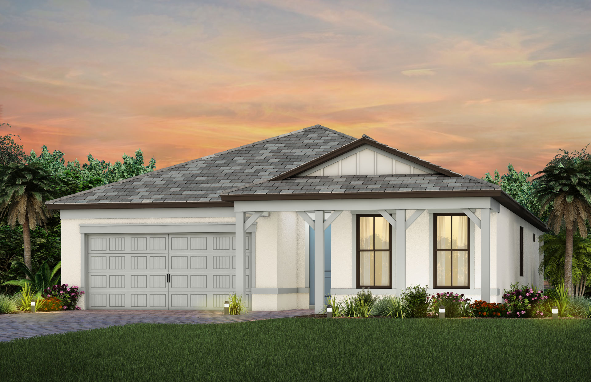 The Palmary is filled with open living areas. The spacious gathering room flows seamlessly into the kitchen, which includes a large pantry and center island, making this space both elegant and functional. A flex room off the foyer could be an office, den, or additional bedroom.