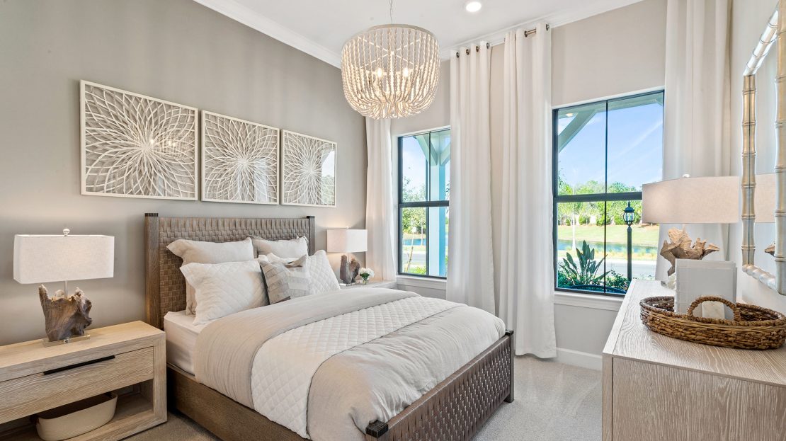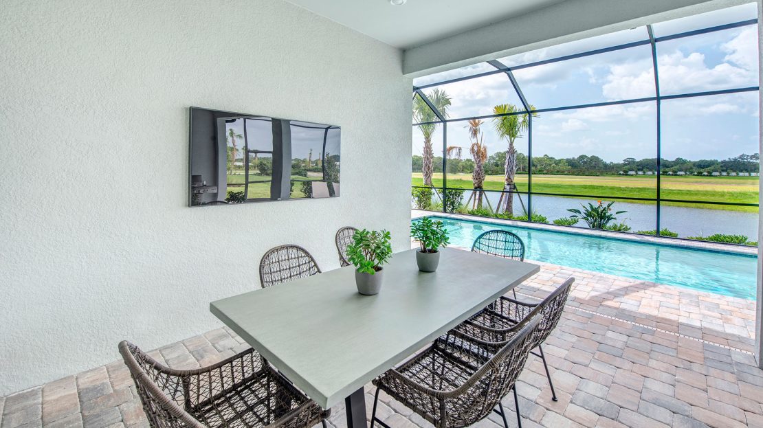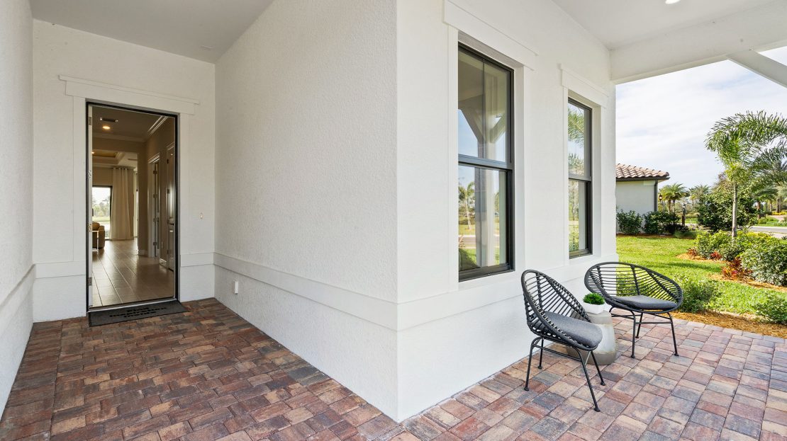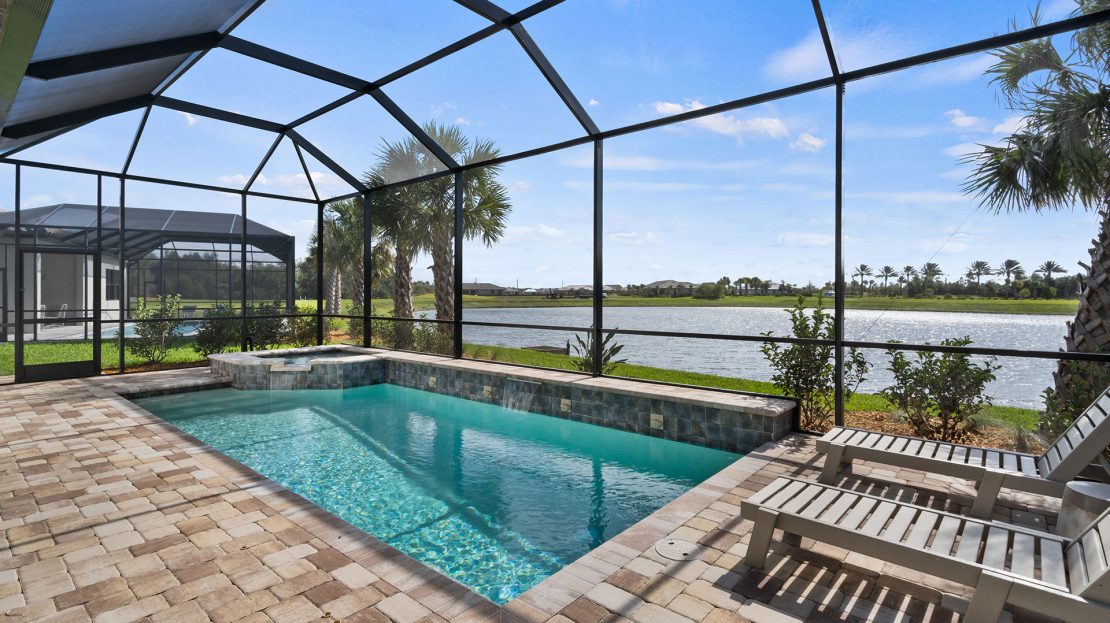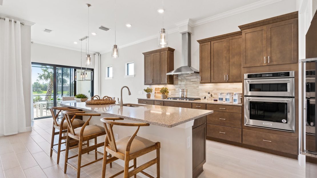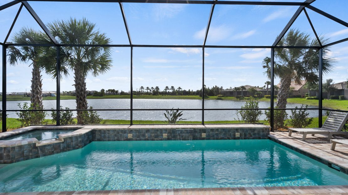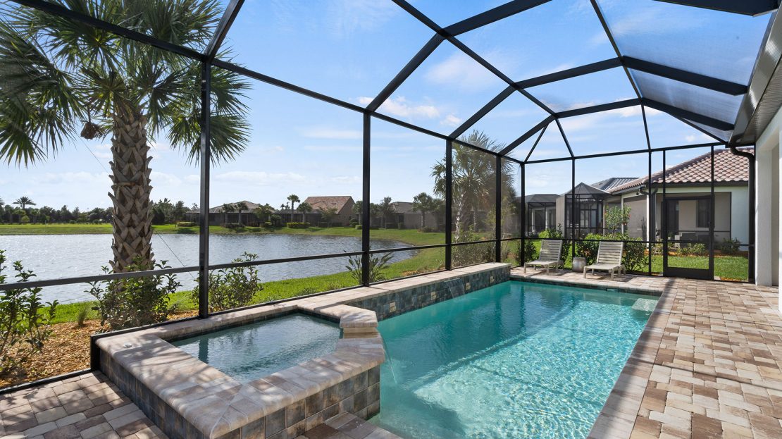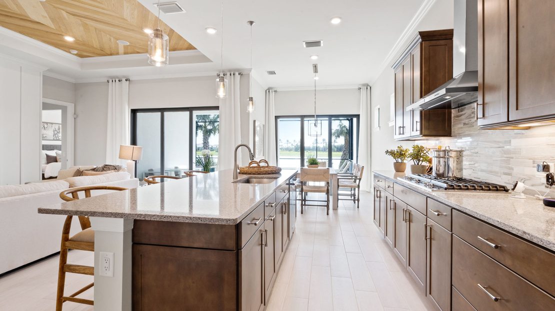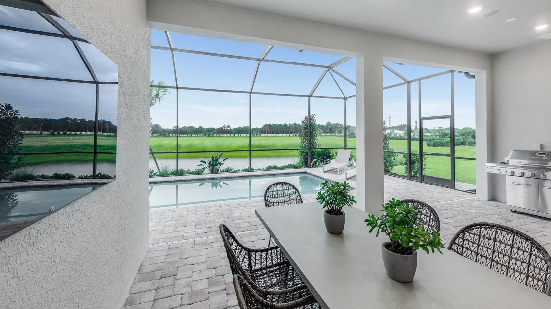 The spacious kitchen and gathering room offers plenty of room to entertain. The cornerless sliding glass doors open up to the lanai to create the ultimate indoor/outdoor entertaining space. With dual walk-in closets in the owner’s suite and a private ensuite in the second bedroom, you and your guests will have all the space you need.