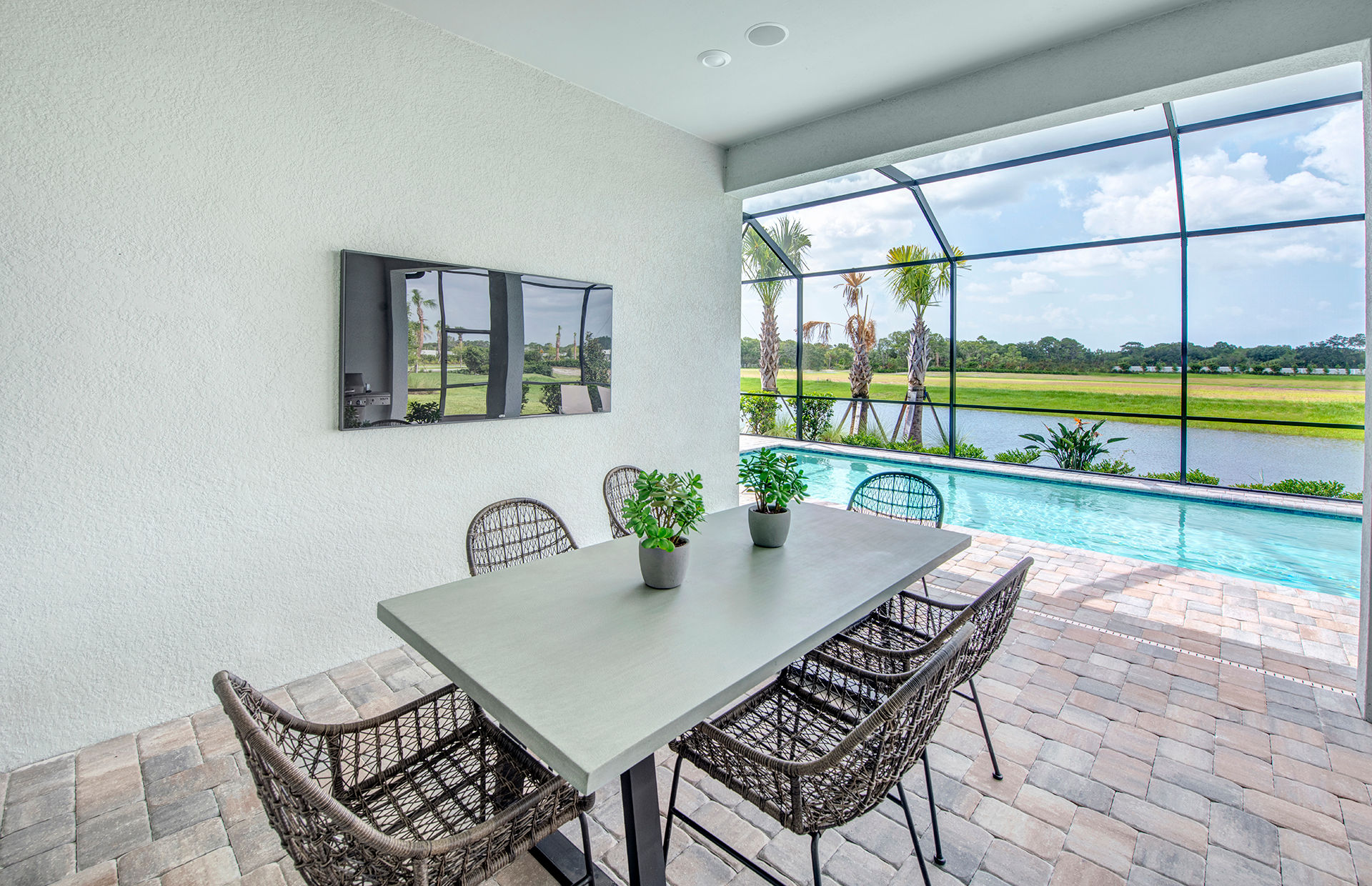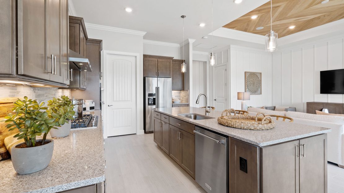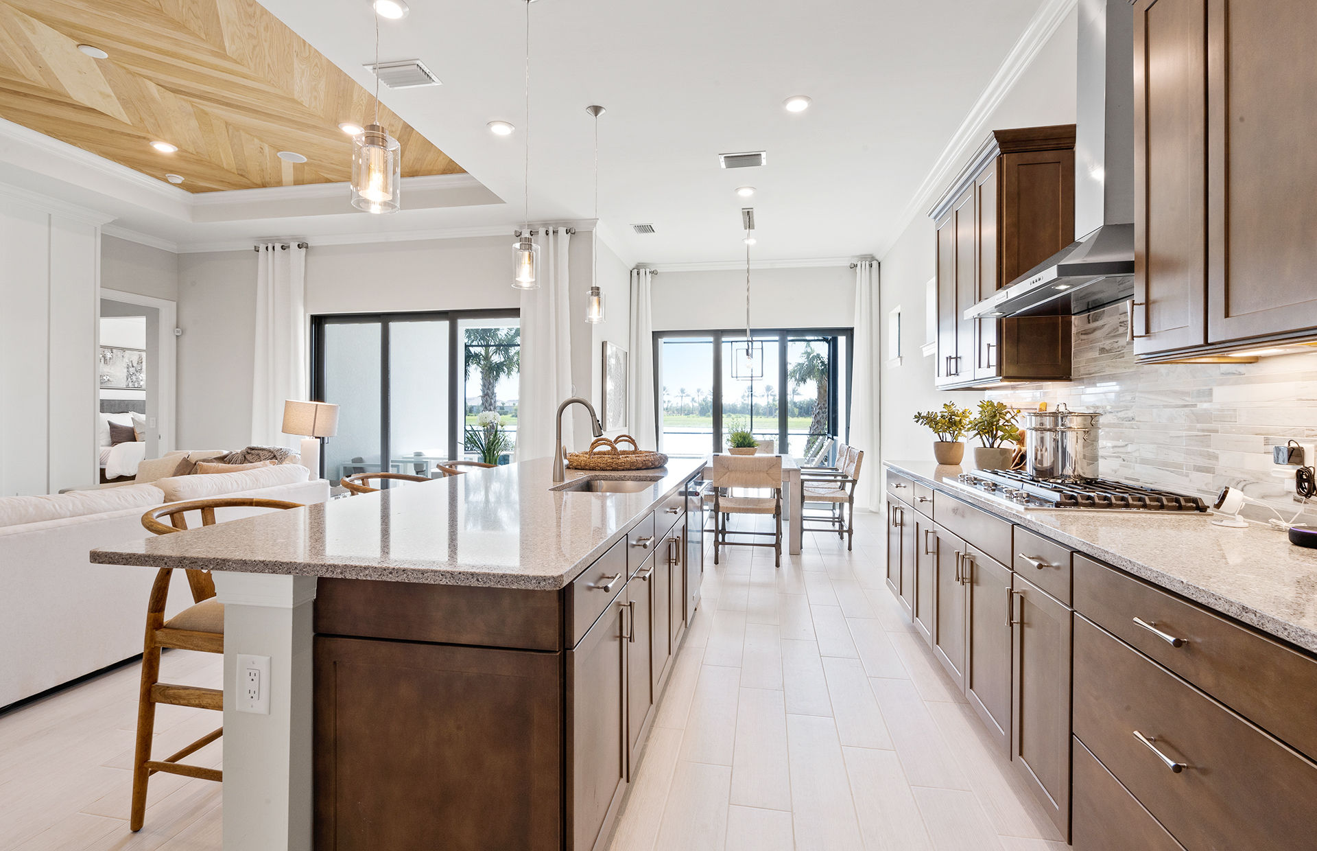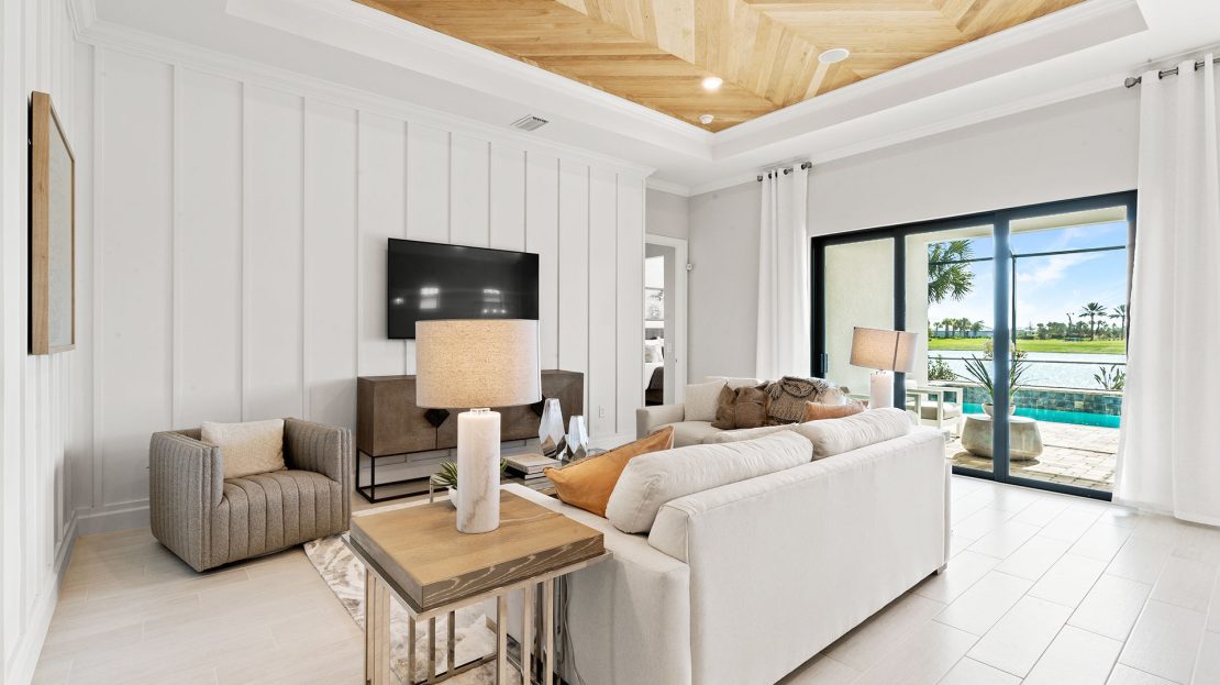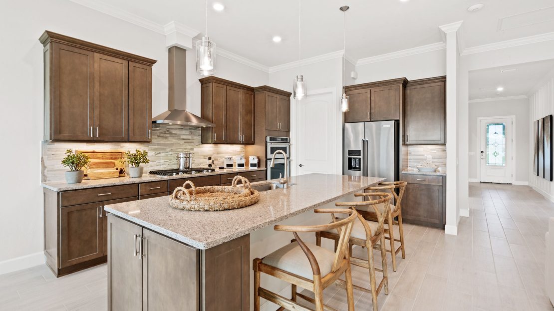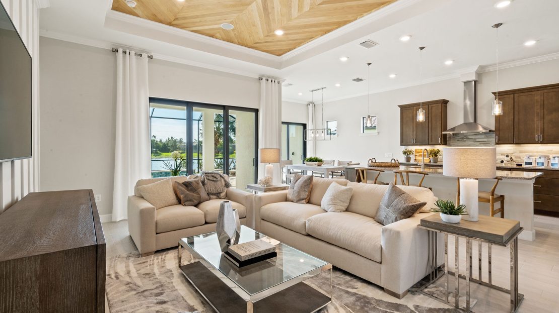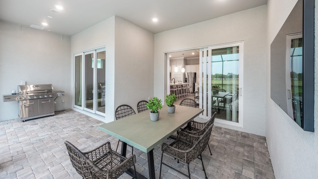 The spacious kitchen and gathering room offers plenty of room to entertain. The cornerless sliding glass doors open up to the lanai to create the ultimate indoor/outdoor entertaining space. With dual walk-in closets in the owner’s suite and a private ensuite in the second bedroom, you and your guests will have all the space you need.