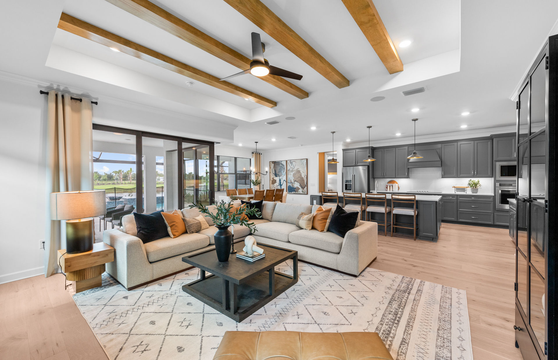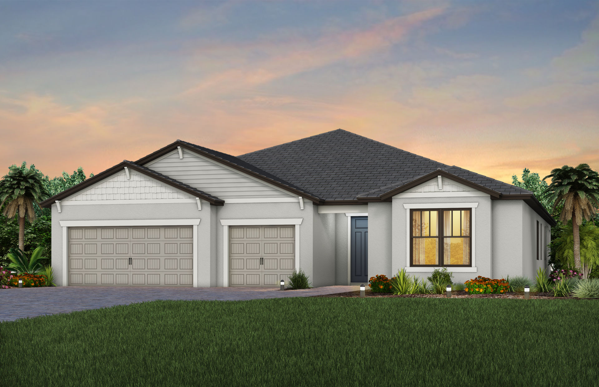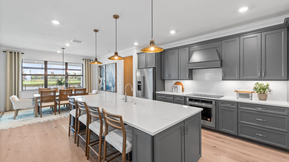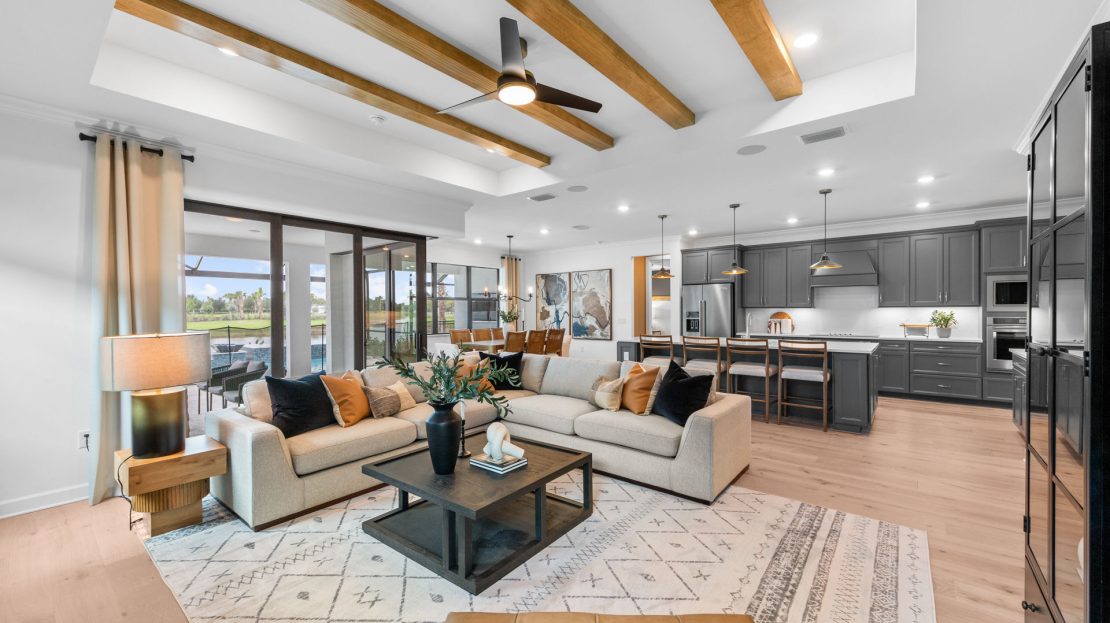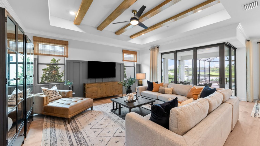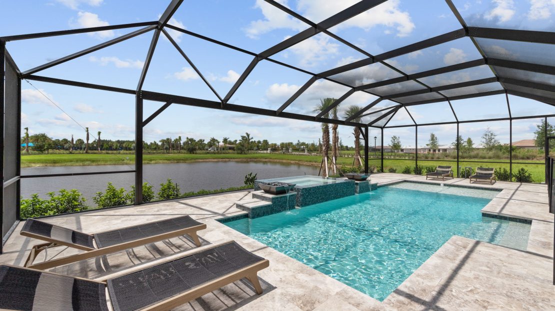 The Renown is known for its entertaining spaces inside and out. Enjoy the covered lanai and pool options. Inside, the home’s interior boasts clean lines and open spaces. Elegant and durable designer finished and plenty of natural light add style to the space.