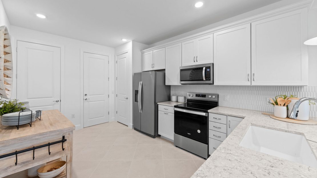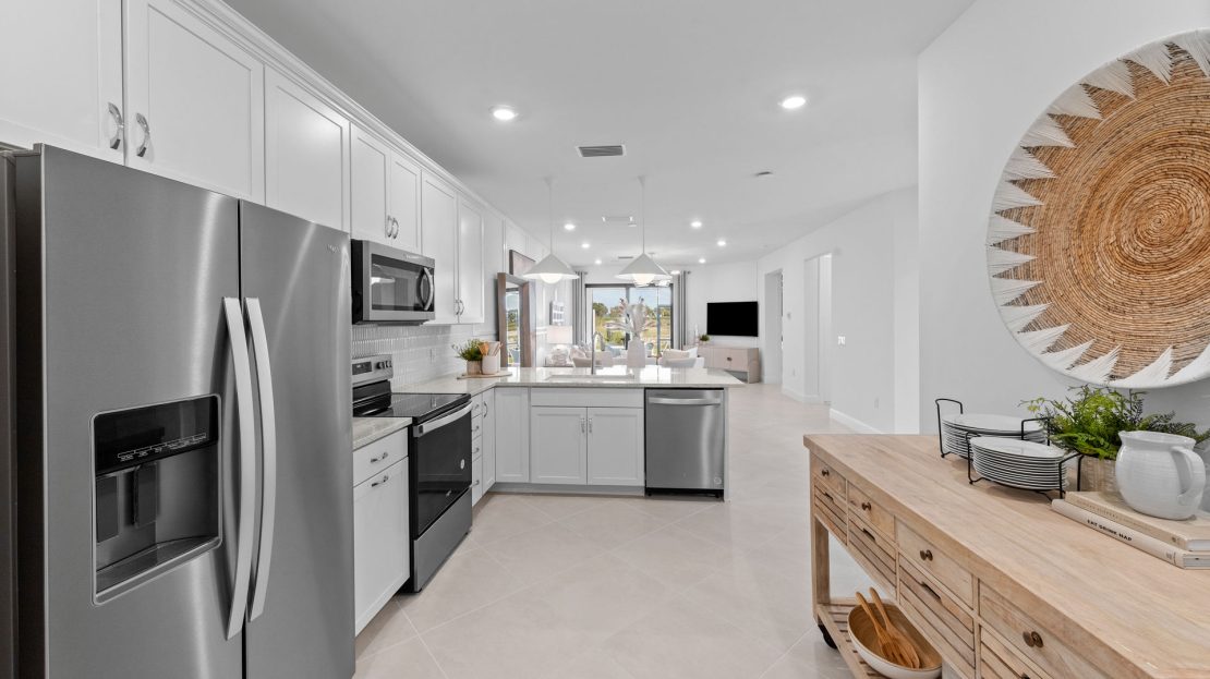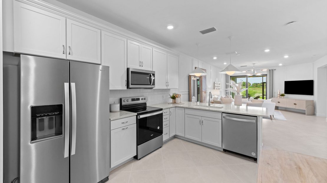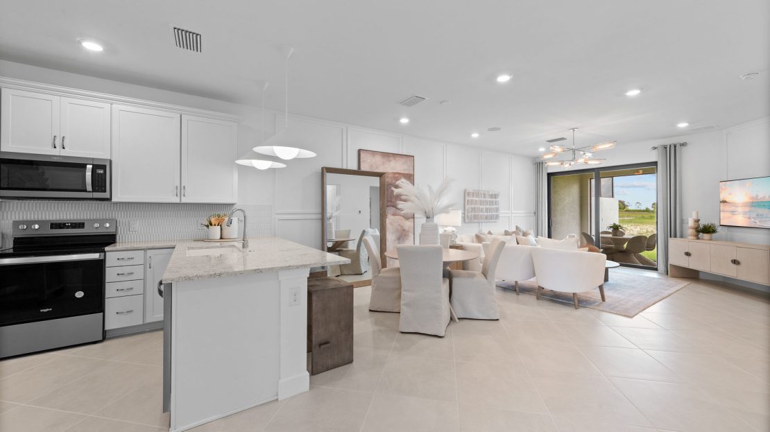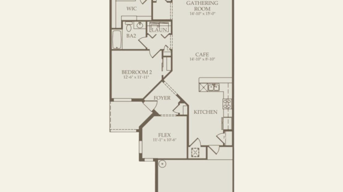 Seagrove stands out for its open flow-through layout. The gathering room connects to the café, flowing seamlessly into the kitchen, which boasts stylish Whirlpool® appliances and designer finishes, making this space both elegant and functional. A flex room off the foyer can be an office, den, or third bedroom – perfectly designed to fit your needs.