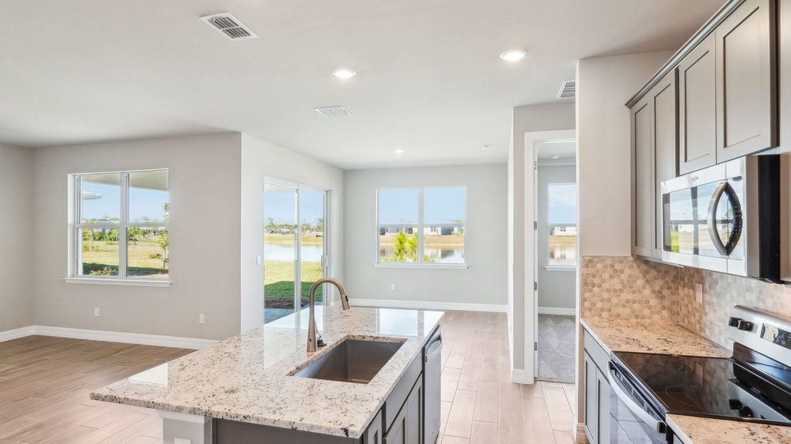 The Kite model at Crescent Lakes – Reserve Series features 3 bedrooms, 2 bathrooms, 1654 sqft, 2 car garage and is a 1 story home. This new construction home priced from 349995. Crescent Lakes – Reserve Series is a new pre-construction home community in Babcock Ranch Florida built by Meritage Homes.