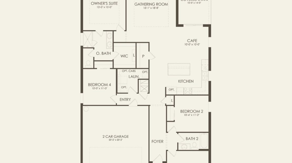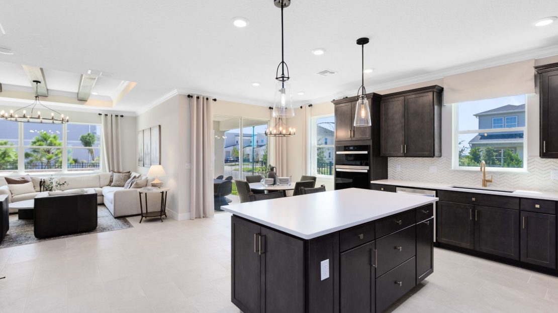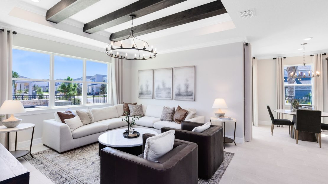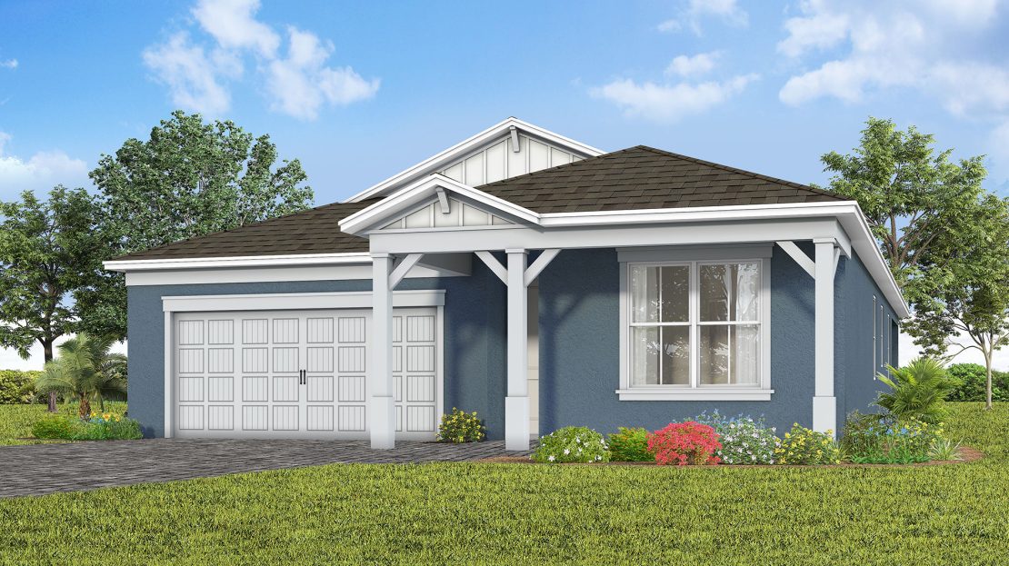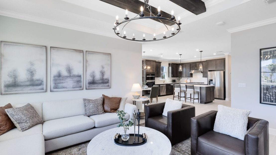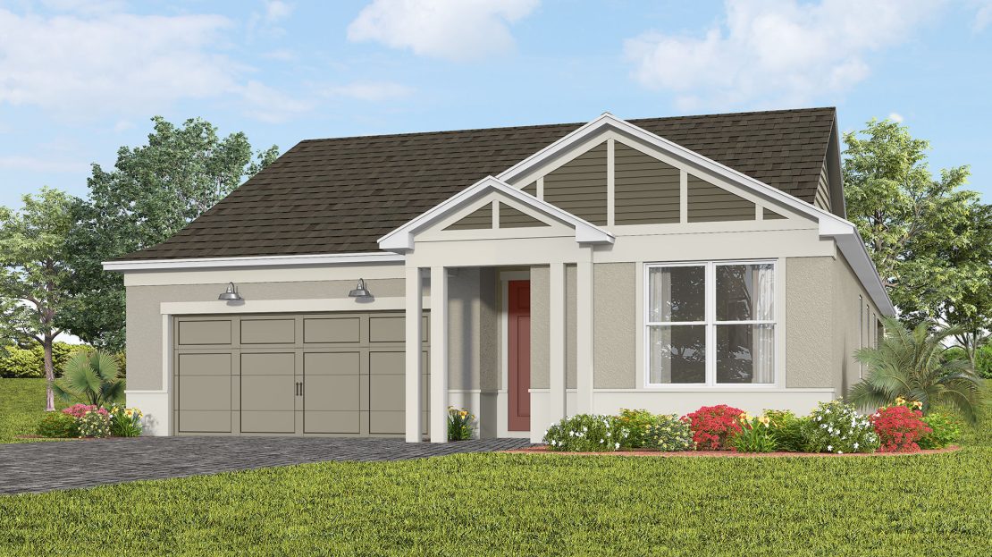 In the new construction Cardinal home design, you have the choice to expand your covered lanai or brighten your gathering room with sliding glass doors added to the included covered lanai.