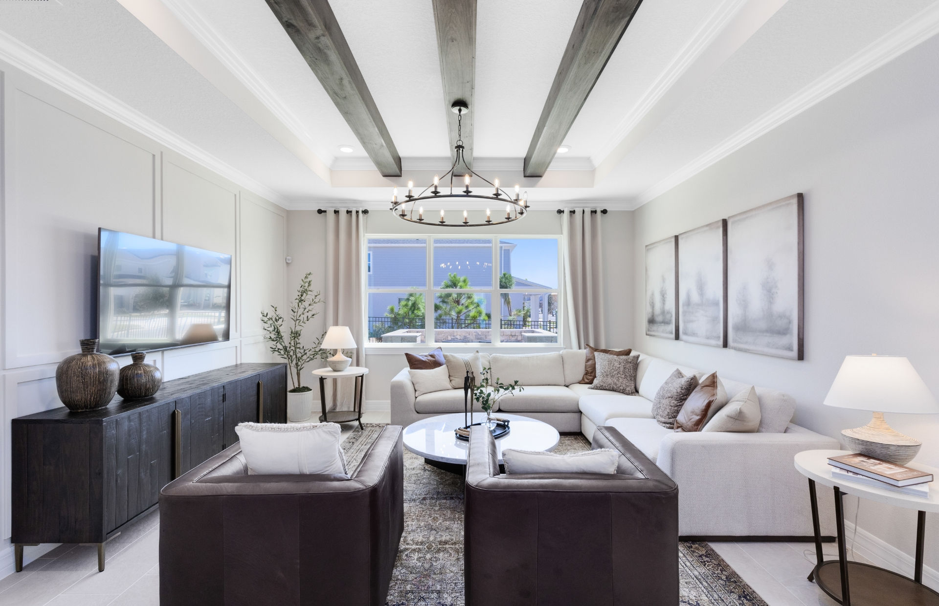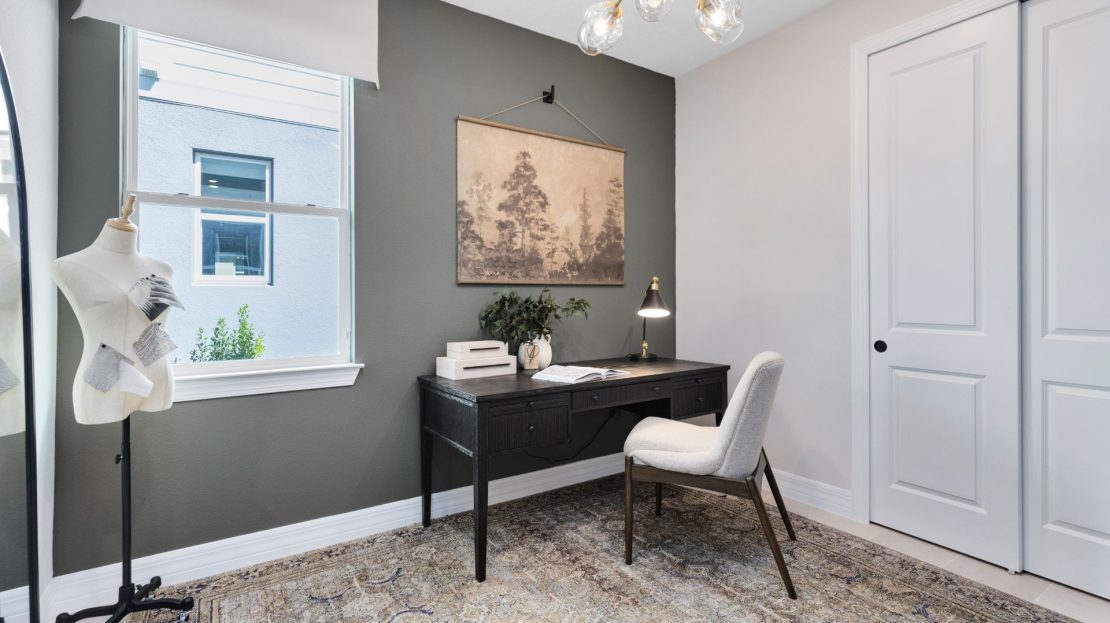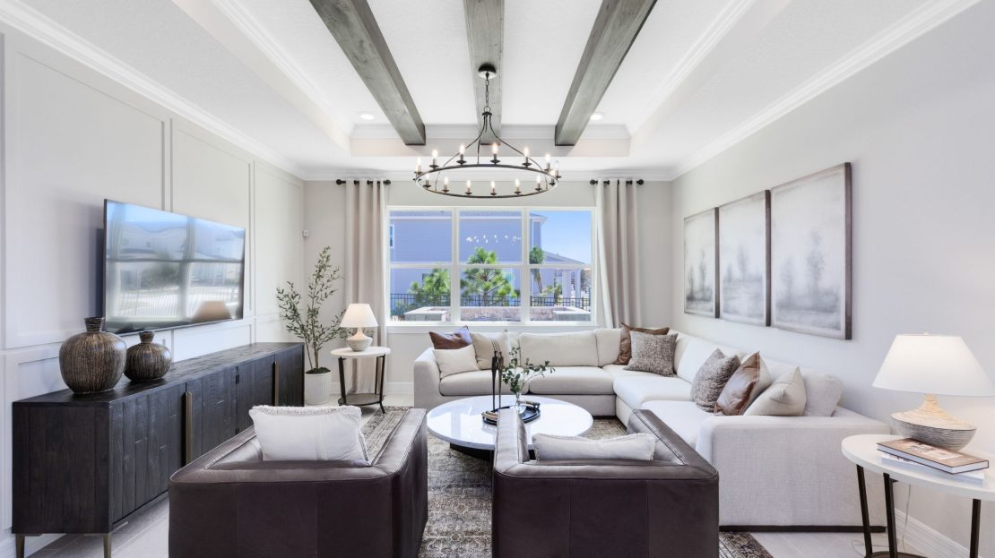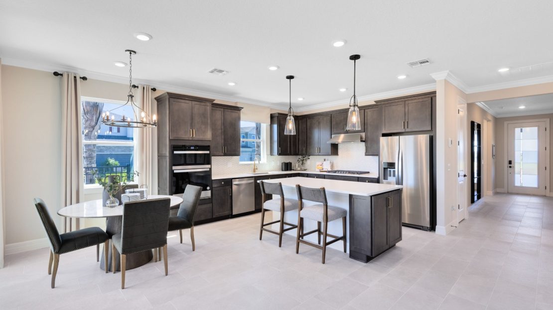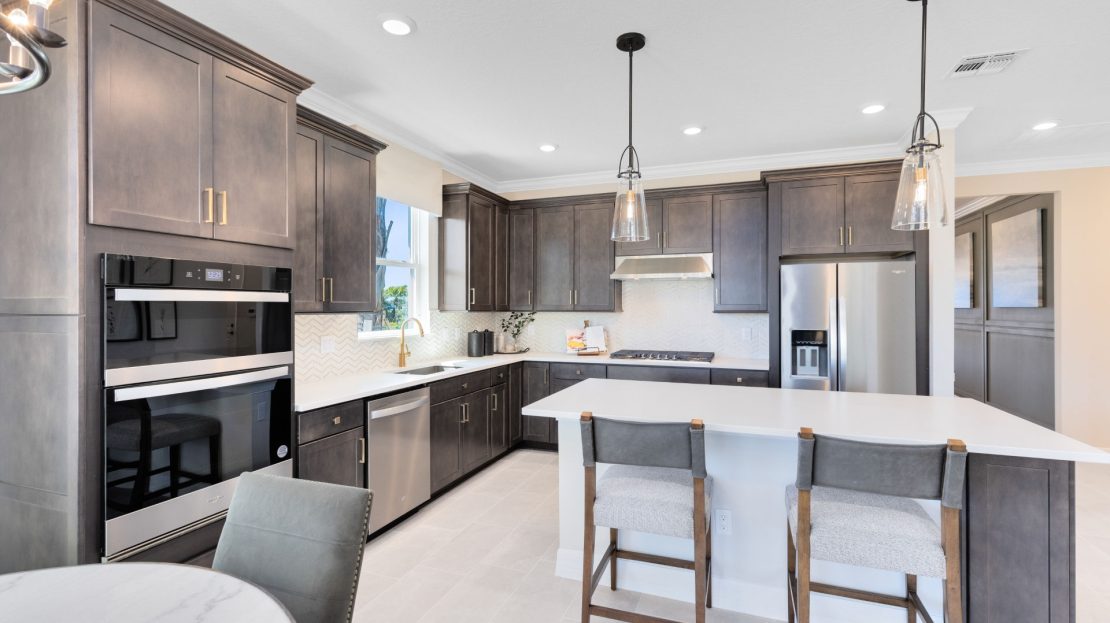 In the new construction Cardinal home design, you have the choice to expand your covered lanai or brighten your gathering room with sliding glass doors added to the included covered lanai.