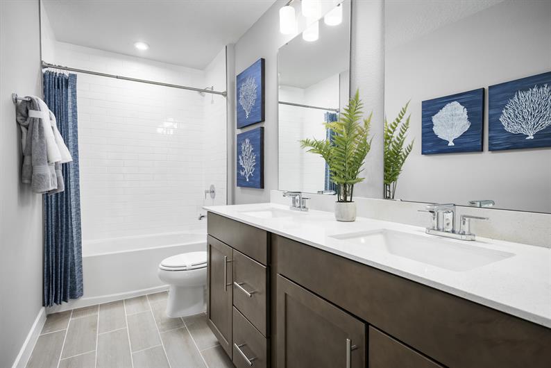 Welcome to the Laguna, where style meets everyday living with a smile! This two-story showstopper proves that practical can still be fabulous, starting with an 11’ kitchen island, you’ll have space for both cooking and homework supervision. The open-concept main level, with its 9’ ceilings flow effortlessly from the family room to the kitchen and dining area. The first-floor bedroom suite offers a private retreat for guests. The owner’s suite is your personal getaway, complete with dual walk-in closets and a spa-inspired bathroom that makes morning routines feel like a luxury experience. The versatile loft space adapts to your family’s needs, whether that’s a homework hub, movie night central or your peaceful reading escape. With five bedrooms, clever storage throughout, and indoor-outdoor living that brings the party potential, the Laguna isn’t just a house – it’s where your family’s best moments are waiting to happen!
