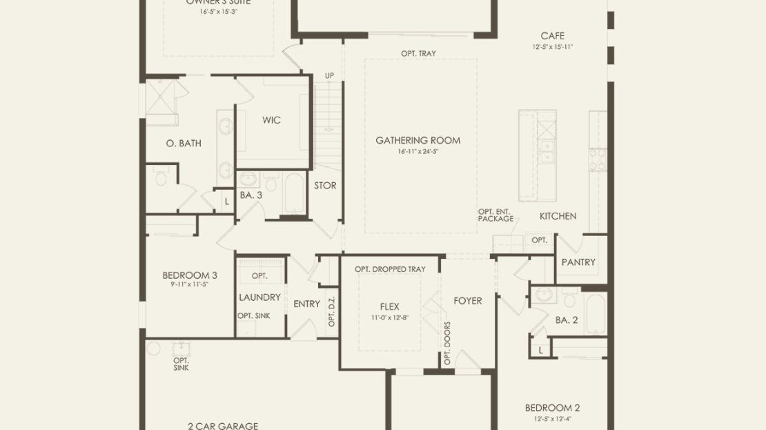 Enjoy a beautifully designed kitchen in the Stellar Grand home design with features such as an open concept kitchen and cafe, a large kitchen island, stainless appliances, and an oversized pantry.