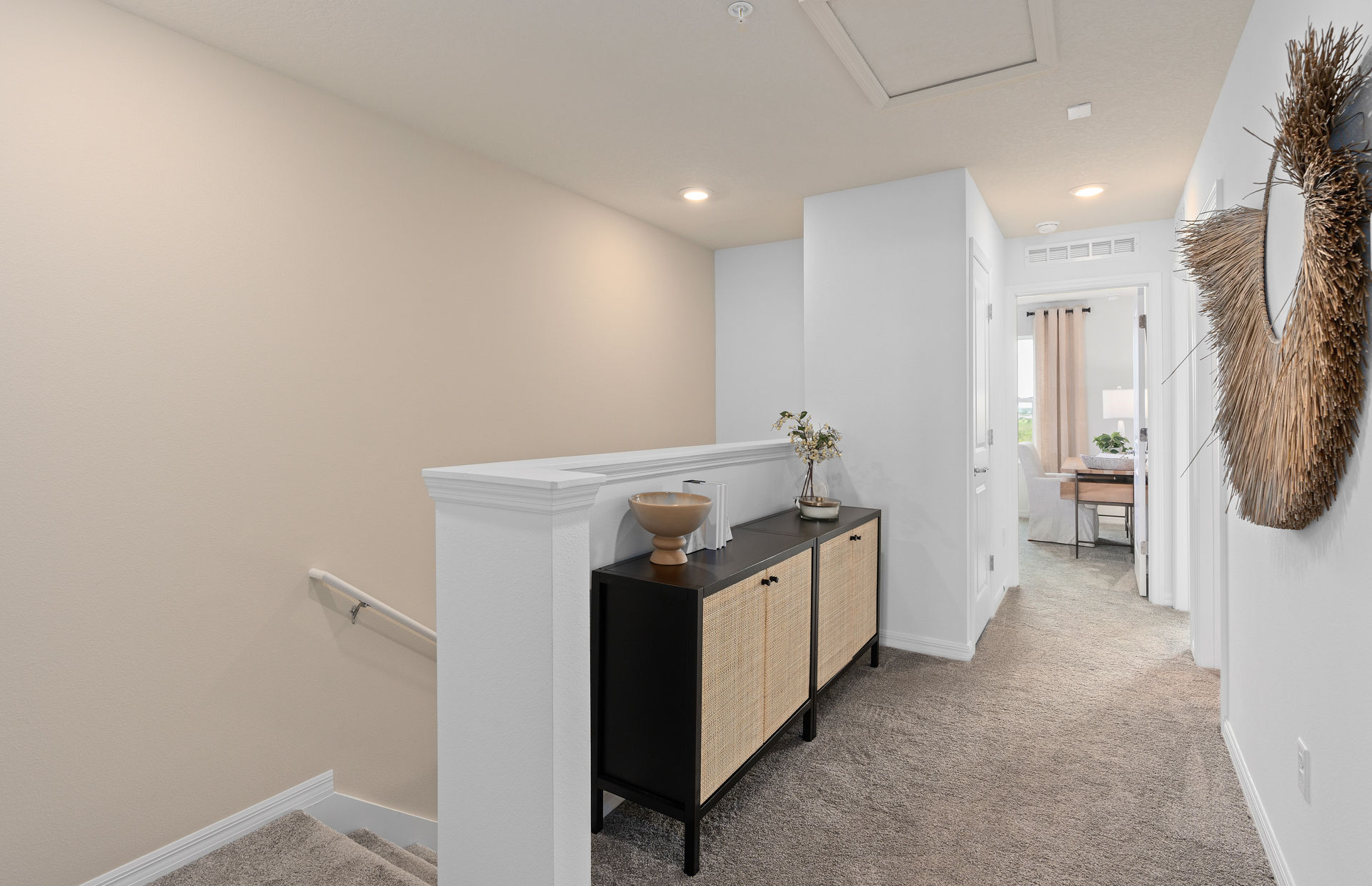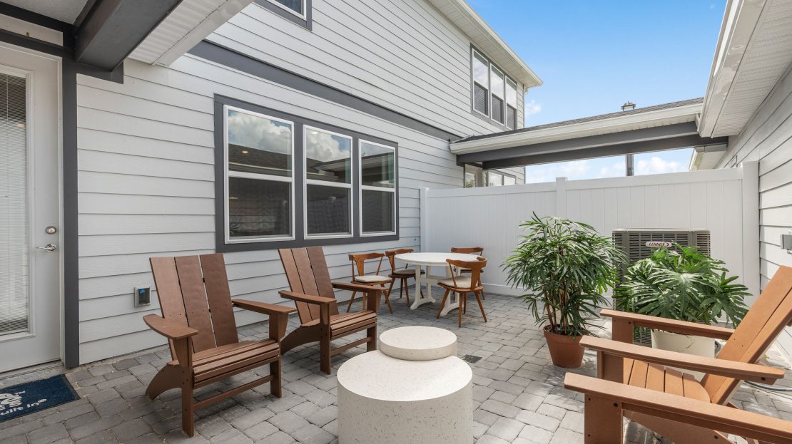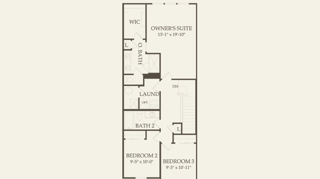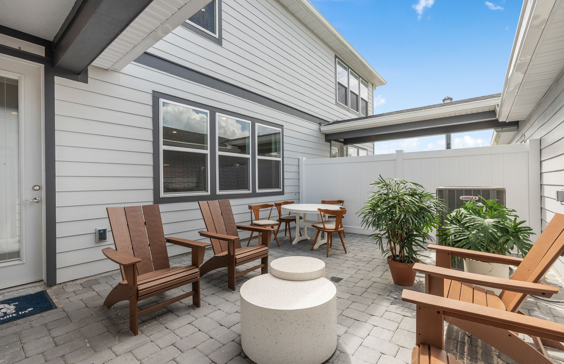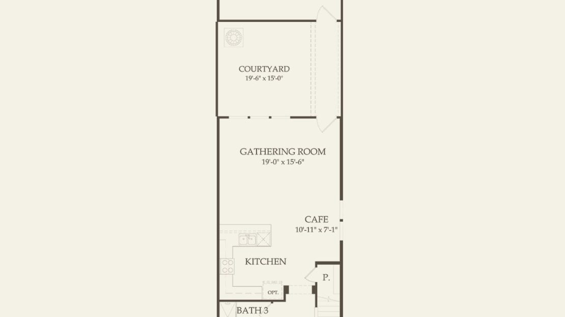 The Trailwood features a wrap around kitchen and gathering space overlooking the courtyard. The covered walkway provides easy access from the two-car garage through the courtyard. Dual owner’s suites and adjoining baths with dual sinks are ideal for guests or roommates.