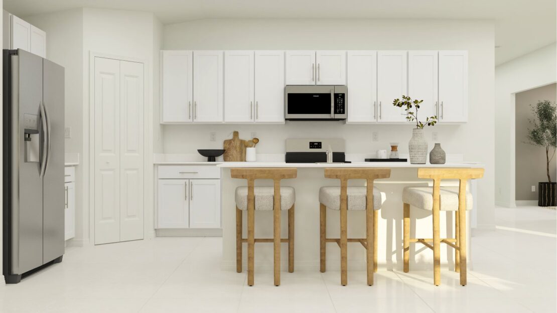This single-story home shares an open layout between the kitchen, dining area and family room for easy entertaining, along with access to an outdoor space for year-round outdoor lounging. A luxe owner’s suite is in the rear of the home and comes complete with an en-suite bathroom and walk-in closet. There are three secondary bedrooms at the front of the home, ideal for overnight guests or residents needing additional privacy, as well as a flex space that can transform to meet the household’s needs.