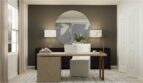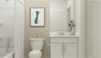 The first floor of this two-story home shares an open layout between the kitchen, dining room and family room for easy entertaining and access to a patio. A luxe owner’s suite is in a rear corner of the first floor, while a secondary bedroom is at the front, perfect for overnight guests, as well as a flex space which can transform to meet the homeowner’s needs. Upstairs are four secondary bedrooms and a loft for added living space.