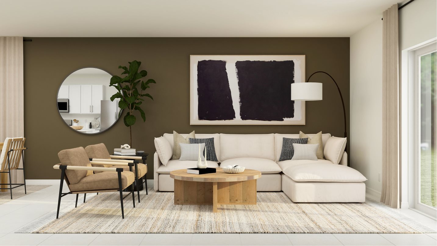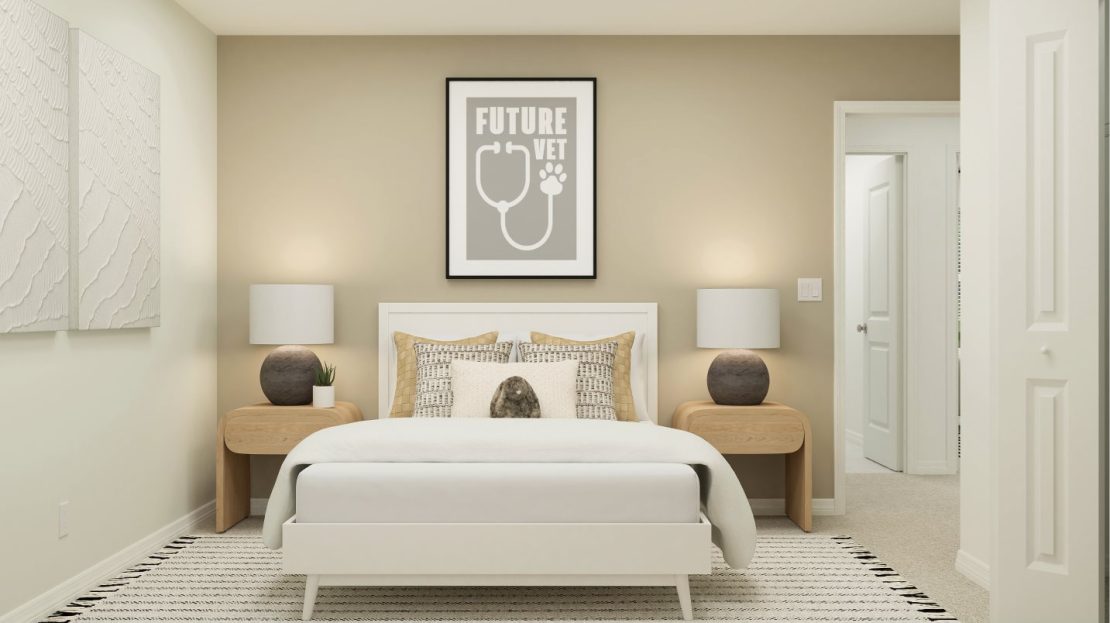 This two-story home highlights a modern open layout, seamlessly integrating a first-floor kitchen with a central island, a dining room and a welcoming family room with patio access. On the same level is a private owner’s suite with an attached bathroom. Situated upstairs is a versatile loft for additional shared living space and four secondary bedrooms to provide restful retreats to family members and guests alike.