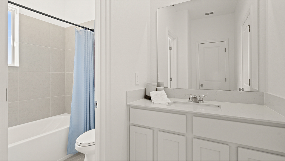 This new two-story home is host to an inviting and spacious open-concept layout on the first floor, blending the kitchen, living and dining areas to maximize interior space. On the second floor, a versatile loft provides a convenient shared living area easily accessible from two bedrooms and a luxurious owner’s suite with a full bathroom and walk-in closet.