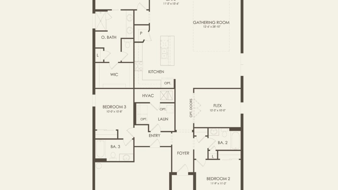 The Medina home design offers a spacious owner’s suite and secondary bedroom with its own full bath. Enjoy the versatility of a flex room just off the foyer that can serve as an extra bedroom, study, or office.