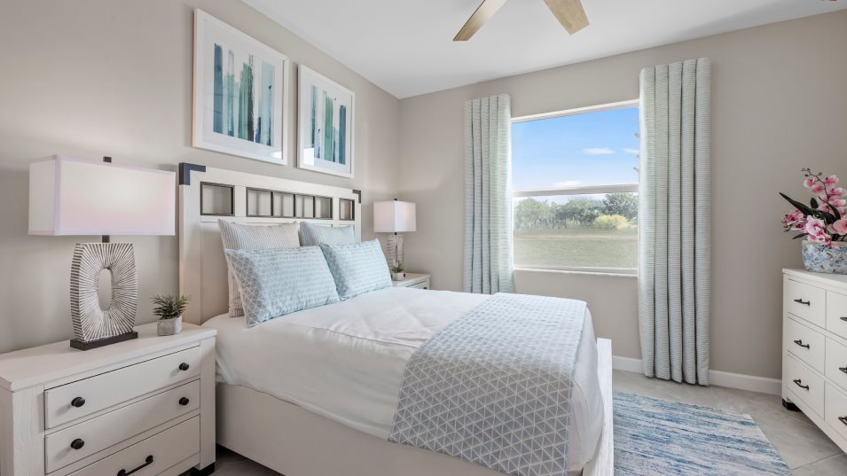 This single-story home offers versatile living, with an open design among the dining room, kitchen and family room, which lead to a covered lanai for outdoor experiences. Surrounding the space are all four bedrooms, including the lavish owner’s suite with an adjoining bathroom and a large walk-in closet. A versatile two-car garage completes the home. Palm Lake at Coco Bay is a master-planned community of new homes that seamlessly blends coastal living with modern comfort, now selling in Englewood, FL.n