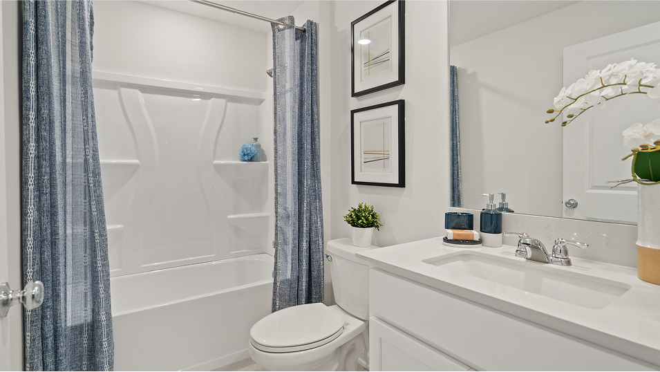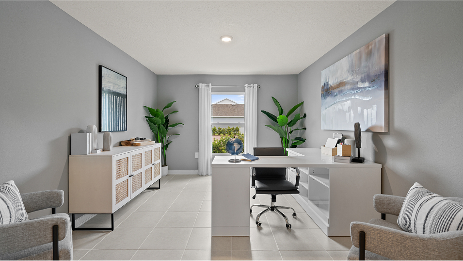 This single-story home shares an open layout between the kitchen, dining area and family room for easy entertaining. A luxe owner’s suite is in the rear of the home and comes complete with an en-suite bathroom and walk-in closet. There are three secondary bedrooms at the front of the home, ideal for overnight guests or residents needing additional privacy, as well as a flex space that can transform to meet the household’s needs.