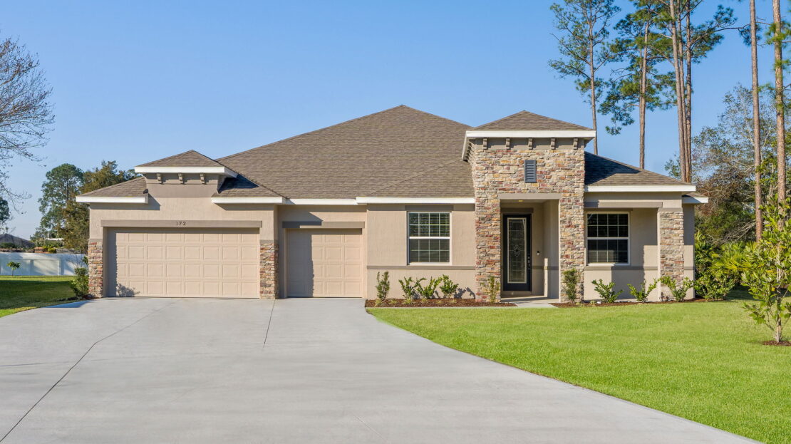 Redbud Model at Crystal Bay Estates in Grant-Valkaria, FL built by DR Horton-. Floorplan with 4 beds, 3 baths, 2312 sqft from 409990