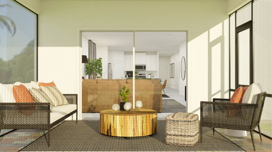 This new single-story home features an open layout optimized for ease of living. At the heart of the home is a modern kitchen with a center island overlooking the café, Great Room and a rear screened porch. A flex space and bonus room provide ample space for versatile needs such as a private office, gym or hobby room. Throughout the home are two secondary bedrooms and a lavish owner’s suite with a spa-style bathroom.