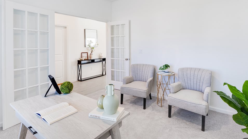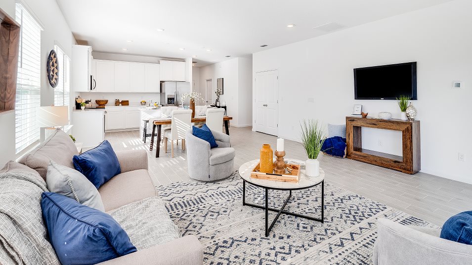 Designed for low-maintenance living, this single-story home showcases a contemporary open layout shared between the gathering room, café and kitchen, which helps make multitasking a breeze. The study provides a convenient space for work-from-home days, while a covered lanai is ideal for entertaining guests. On the other side of the home are all three bedrooms, including the owner’s suite with a spa-style bathroom, plus a two-car garage.