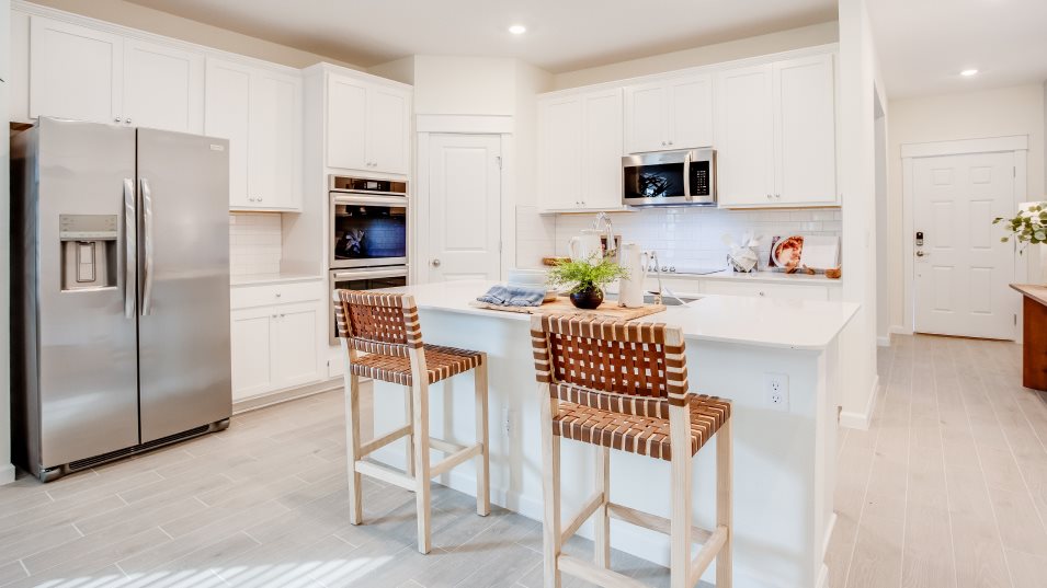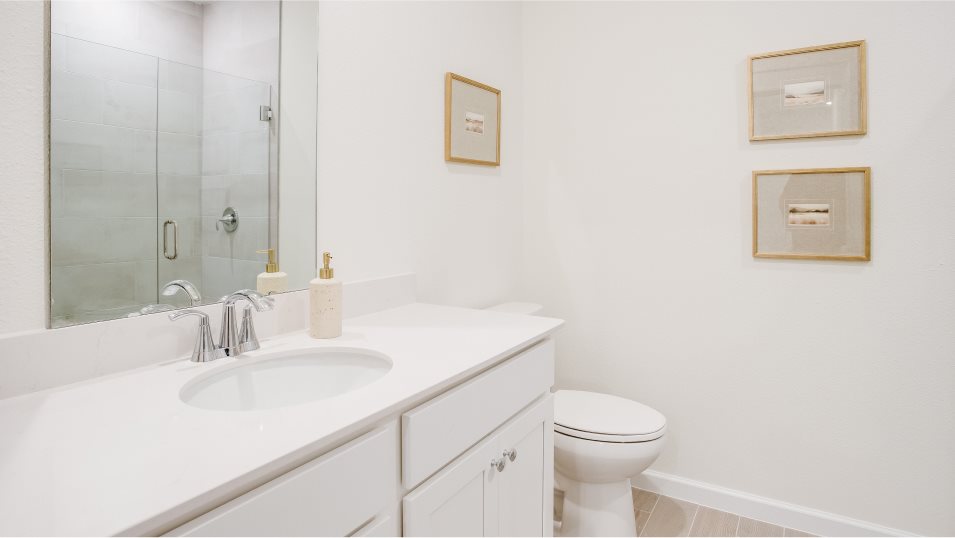 This new single-story home enjoys a low-maintenance design with an inviting open floorplan consisting of the kitchen, café and Great Room, with convenient access to a screened porch for enhanced outdoor living. A versatile study is located off the entry, ideal as a studio or home workspace. Four bedrooms are tucked to the side of the home, including the luxe owner’s suite, which features a spa-inspired bathroom and walk-in closet.