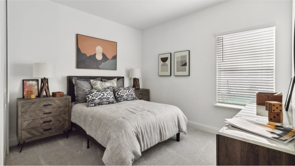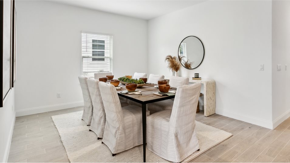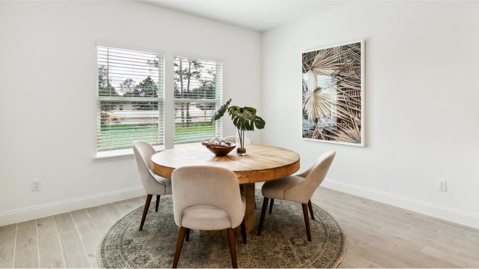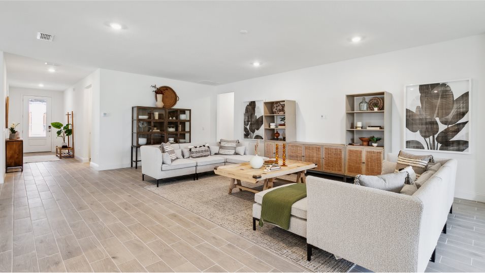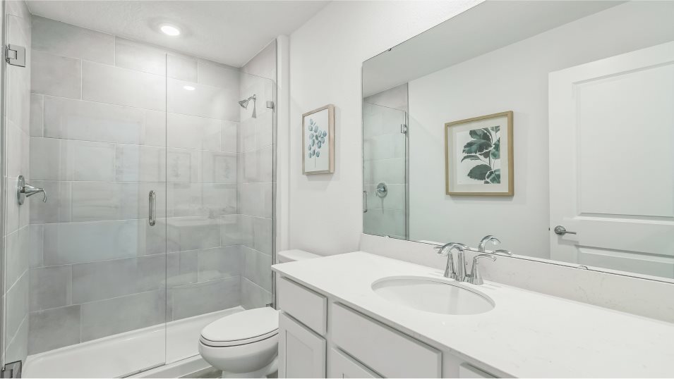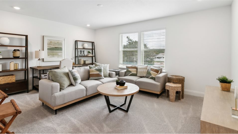 This new two-story home design is the epitome of casual elegance and offers single-level living. The first floor showcases an open-plan layout among the living room, modern kitchen and café, along with a dining room to celebrate formal occasions. Sliding glass doors connect the indoor space to the covered lanai for outdoor activities. There is a total of four bedrooms, including a lavish owner’s suite with a spa-style bathroom. An upstairs bonus room and a three-car garage provide versatile space.
