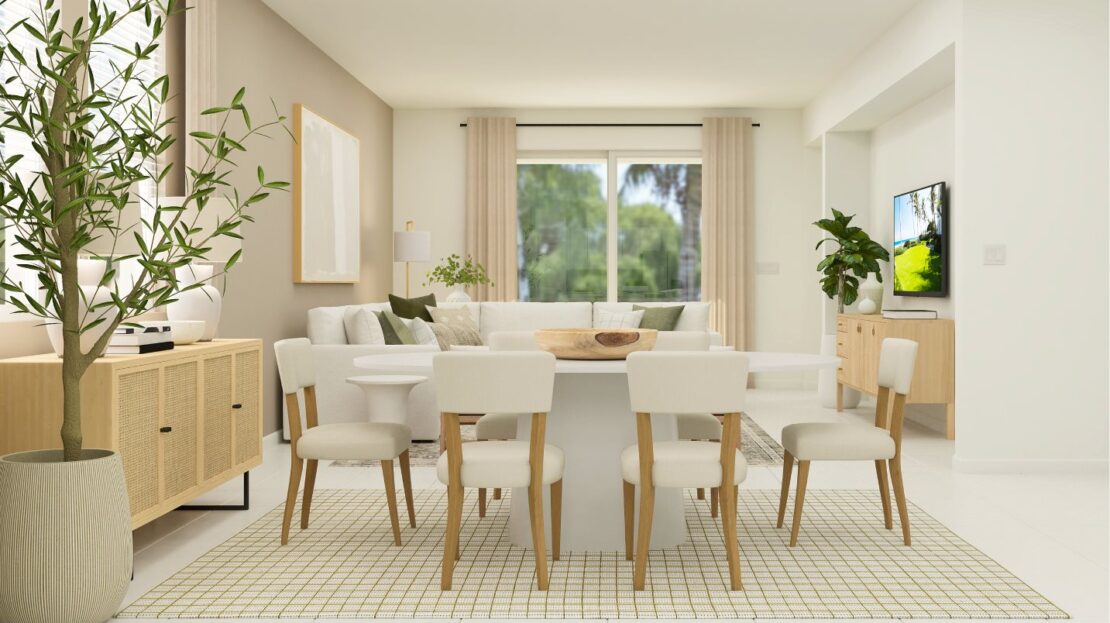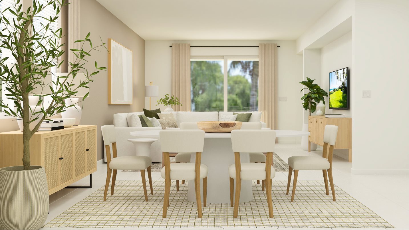 This one-story home makes fantastic use of available space, with an inviting open floorplan consisting of a family room, dining room and chef-inspired kitchen. A versatile flex space is located off the foyer, and three bedrooms are discreetly nestled to the side of the home, including the luxe owner’s suite.