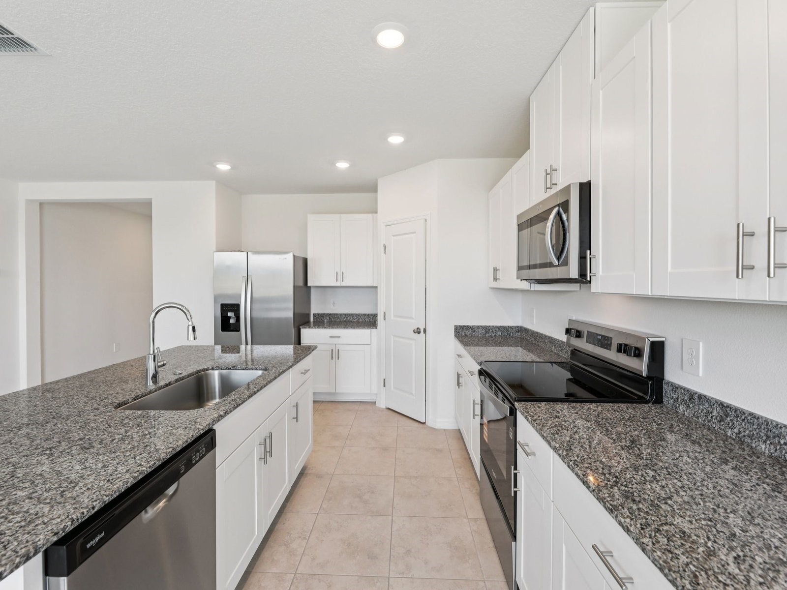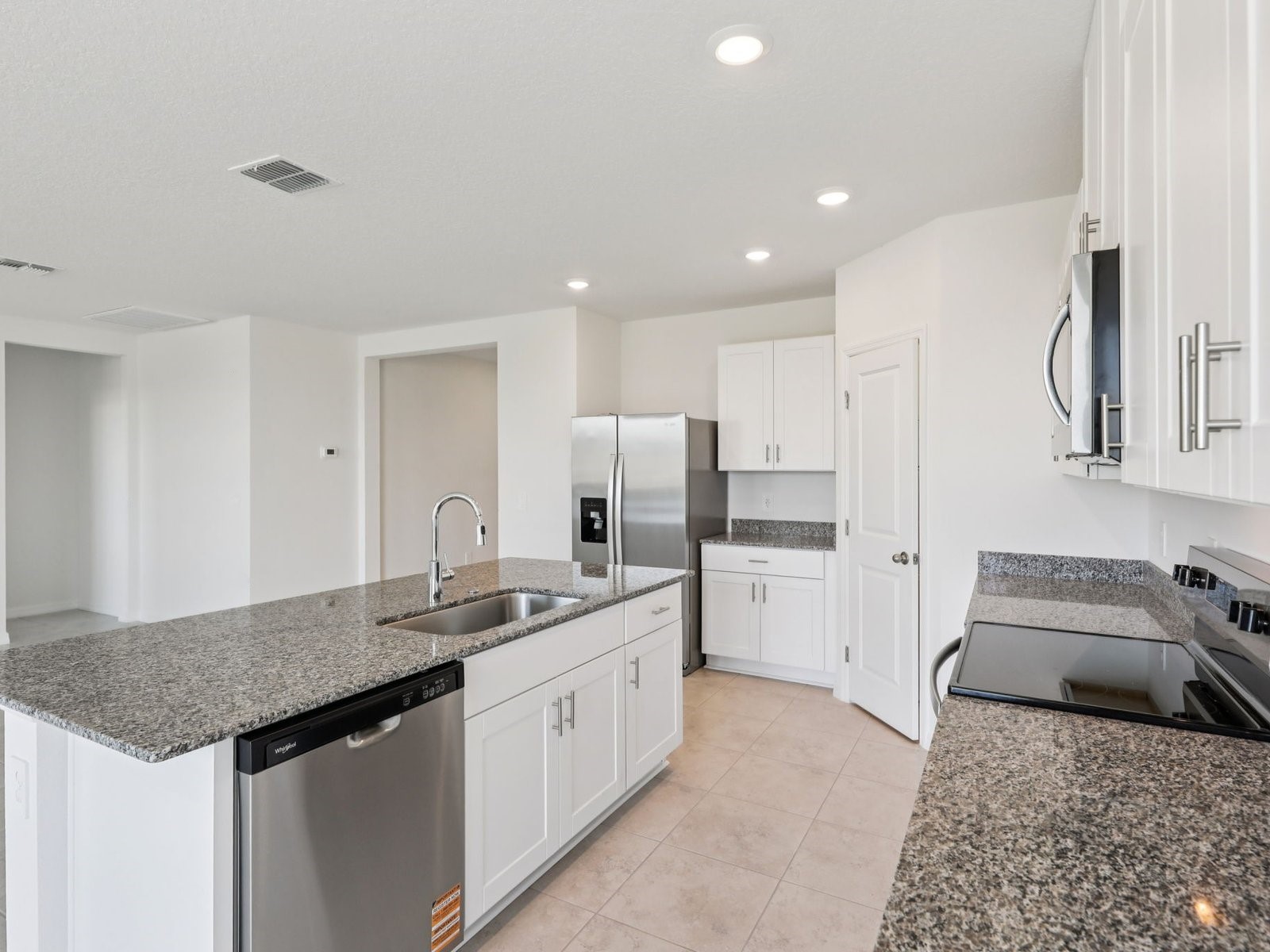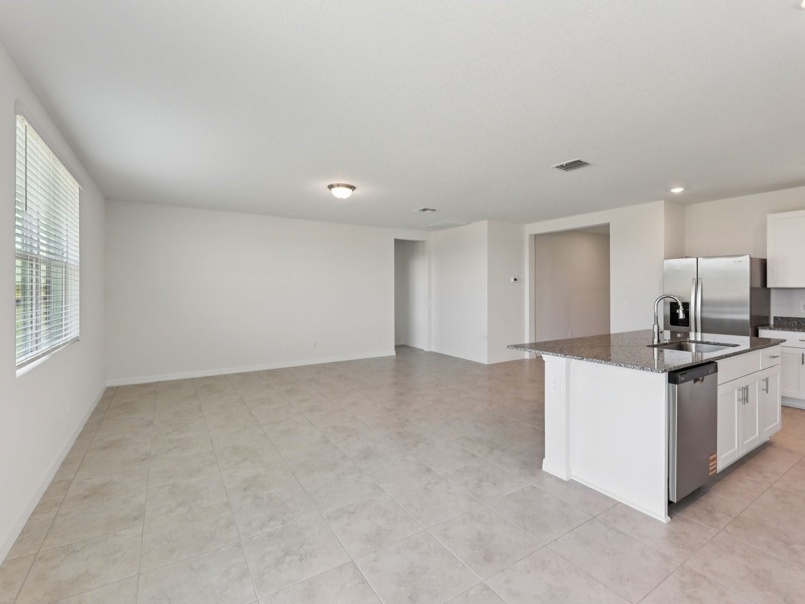 Open floor plan creates a unified living space with a large great room that overlooks the kitchen.