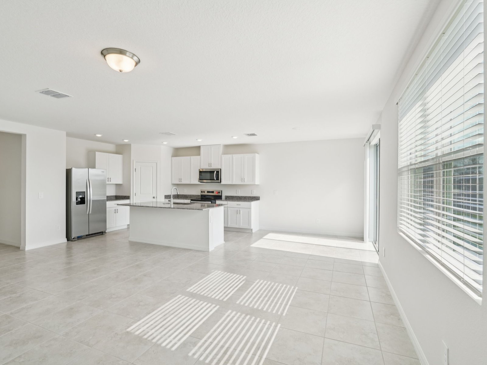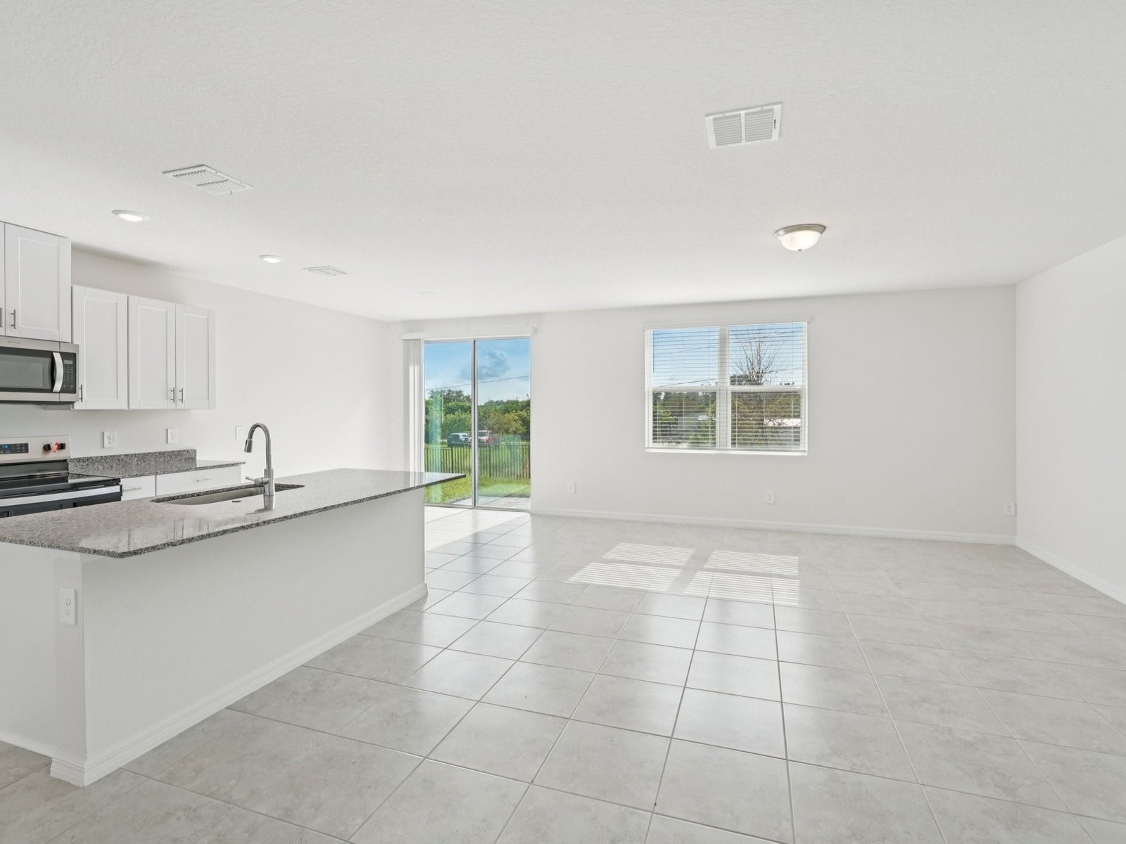Open floor plan creates a unified living space with a large great room that overlooks the kitchen.