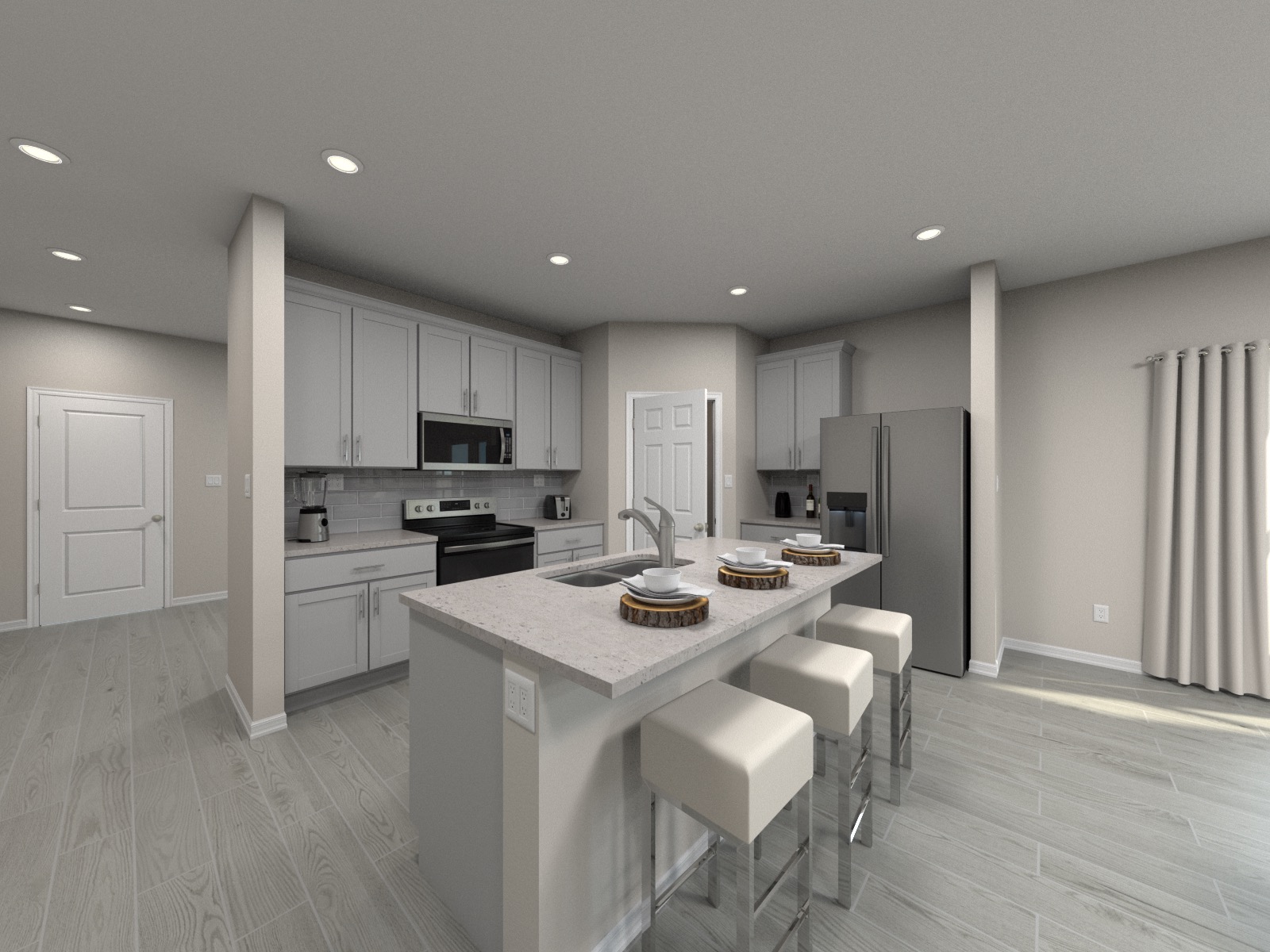 This home’s first-floor primary suite ensures everyone has their own private space. Second floor offers a spacious loft that can be used for work, homework and hobbies. Open kitchen has a large work island.