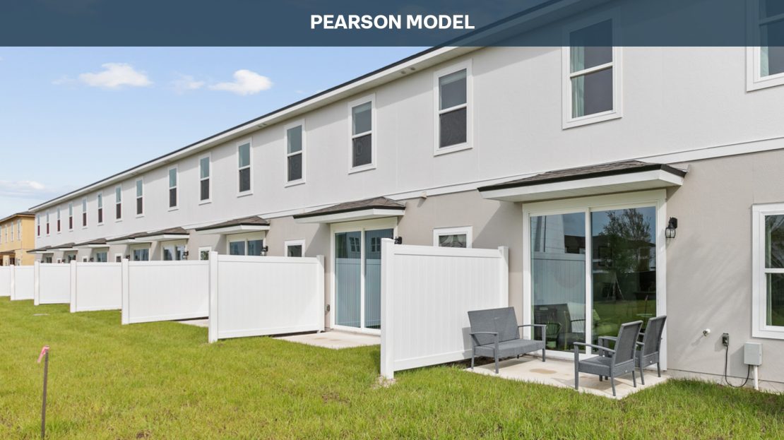 Bridle Creek Townhomes in North Florida is a must-see for buyers looking for a Townhome home. Priced from just $260990, the spacious Pearson model boasts 1468 of living space, with 3 bedrooms, 2.5 bathrooms, and a 1 car garage.