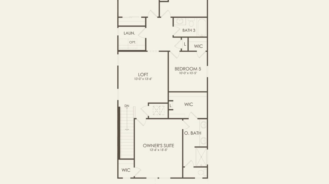 The new construction Caden stands out with its spacious gathering room and kitchen on the first floor. The owner’s suite and bedrooms are nestled on the second floor. This plan also features a loft and 2-car garage.