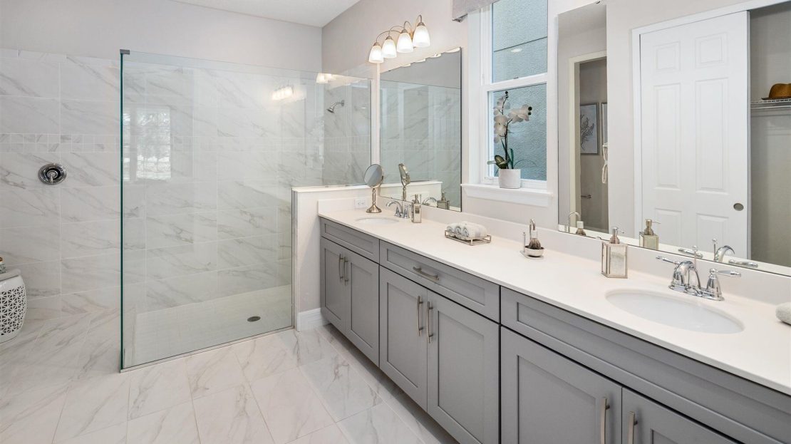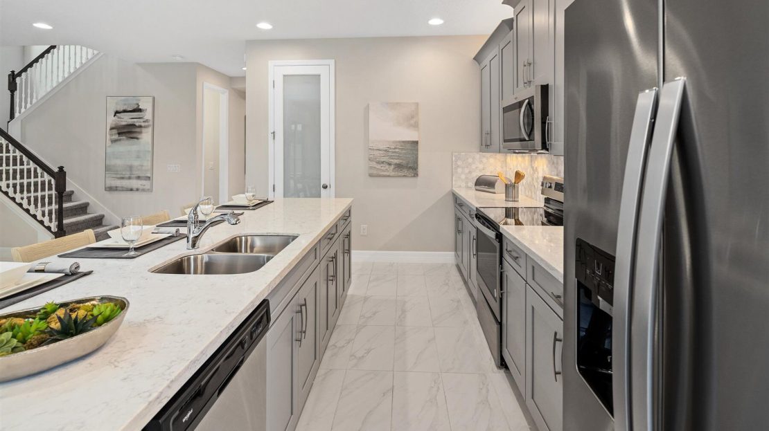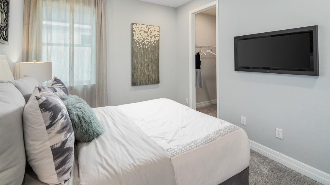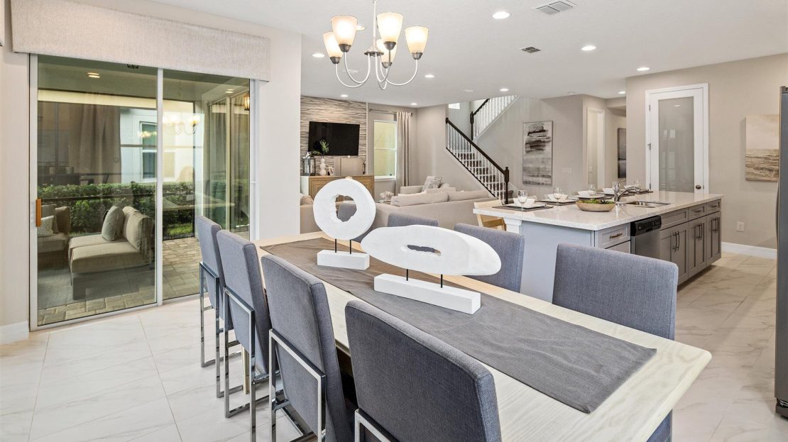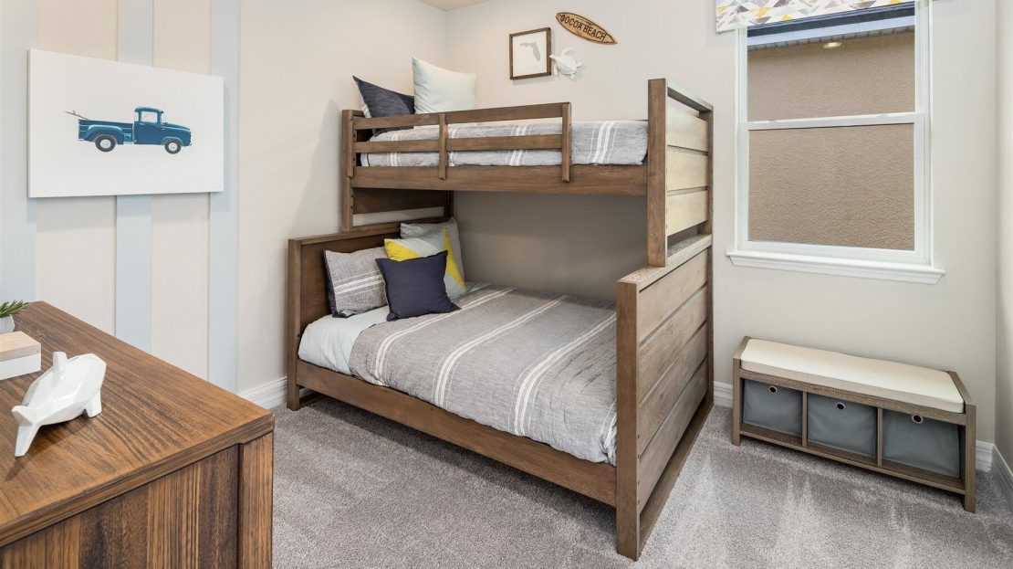 Upon entering The Laguna III, guests are greeted by a grand foyer that leads to a home built with entertaining in mind. The kitchen features an expansive island complemented with granite counter tops, a breakfast bar, a chef-worthy pantry, a breakfast nook and stainless-steel appliances. At 2,700+ square feet, The Laguna III boasts 6 bedrooms, 4.5 bathrooms, a 2nd-story loft and a gathering room bathed in natural light from the adjacent covered lanai. Located on the 1st floor and featuring generous closet space and an owner’s bath with a double sink vanity, the owner’s suite is the perfect oasis for guests to relax and unwind after a long day. Melt away stress and take advantage of the Florida heat by taking a dip in the home’s adjoined private covered pool. The Laguna III is available in the Coastal and Modern exterior styles.