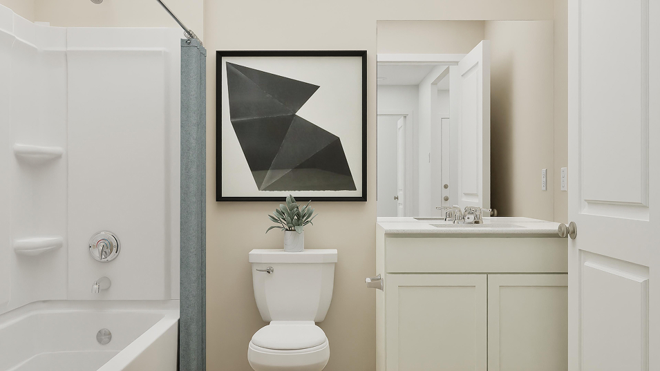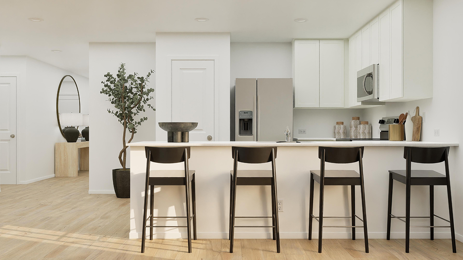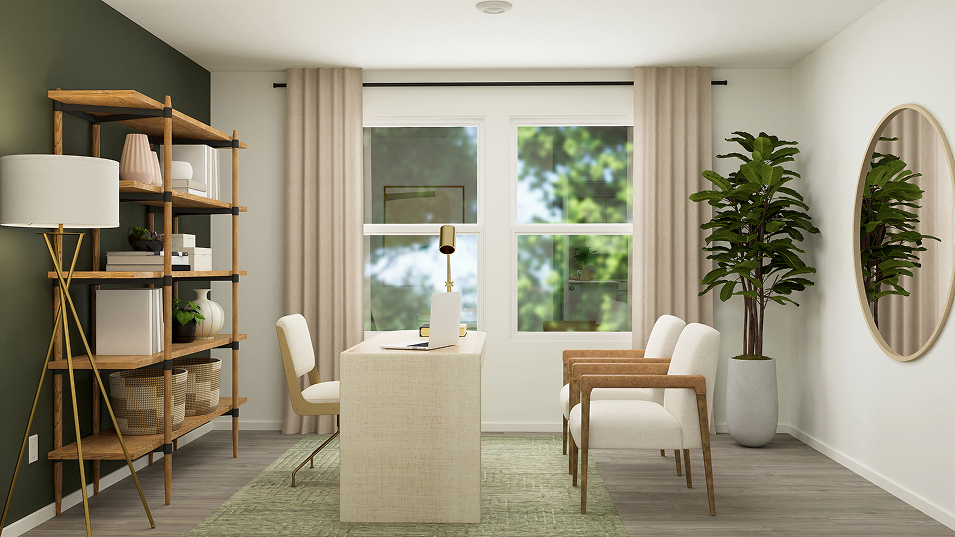 This new four-bedroom home offers convenient single-story living. Upon entry are three secondary bedrooms steps from a full bathroom, leading to an open plan shared between the kitchen, living and dining areas. Tucked away to the side of the home is a versatile flex space, ideal as a studio or office. A luxurious owner’s suite provides a private retreat at the back of the home, complete with a full bathroom and walk-in closet.