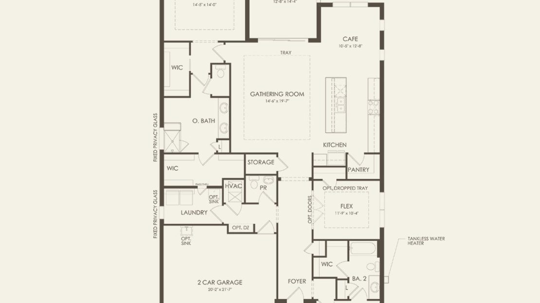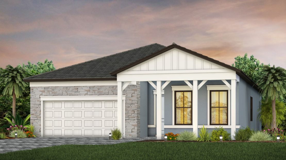The Prestige features a spacious kitchen and an open gathering room that offers plenty of room to entertain family and friends. Add an optional covered lanai extension and sliding glass door at café to create the ultimate indoor-outdoor living space. Relax in the owner’s suite featuring a private bathroom and dual walk-in closets in this new home.
