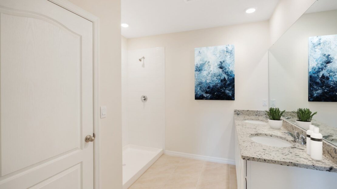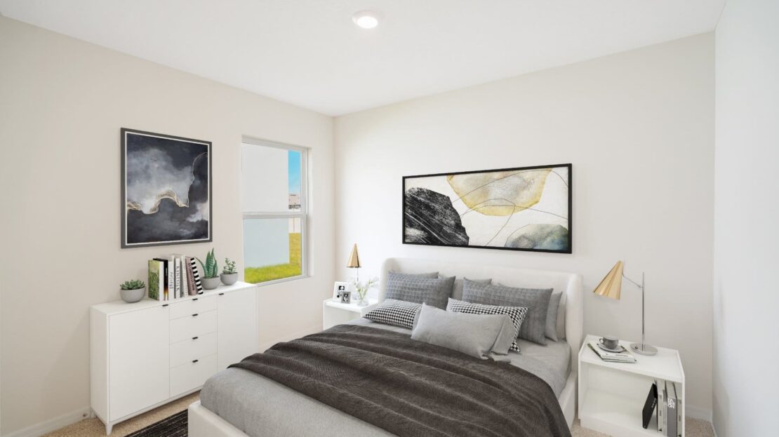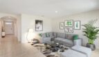 Entertaining is a breeze, as this popular single-family home features a living and dining in the heart of the home, with covered lanai just steps away in your backyard. The spacious kitchen features stainless steel appliances, a convenient island, and walk-in pantry with ample storage. In every bedroom you’ll have carpeted floors and a closet in each room. Whether these rooms become bedrooms, office spaces, or other bonus rooms, there is sure to be comfort.The primary bedroom located in the rear of the home has its own attached bathroom that features a walk-in closet and all the space you need to get ready in the morning. Sharing a sink isn’t a worry with the double vanity. Two additional bedrooms share a second bathroom. This home also features a nice laundry room space with privacy doors and a two-car garage for parking or storage. Like all homes in Summerlin at Hawthorne Ranch, the Aria includes smart home technology, which allows you to control your home anytime with your smart device while near or away.