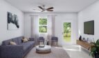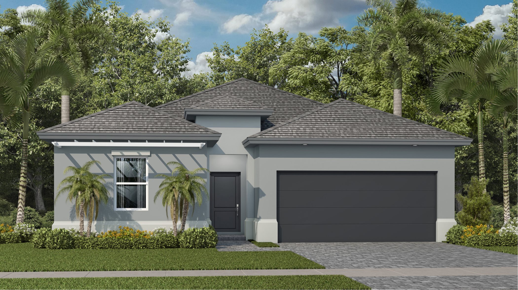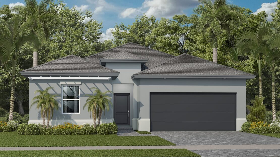 This single-story design features impact-resistant windows and a formal dining room at the end of the foyer, followed by a breezy open floorplan shared between the Great Room and kitchen that works to maximize the footprint of the interior. At the front of the home are three secondary bedrooms with easy access to a full-sized bathroom, while tucked away in a private corner is the serene owner’s suite.