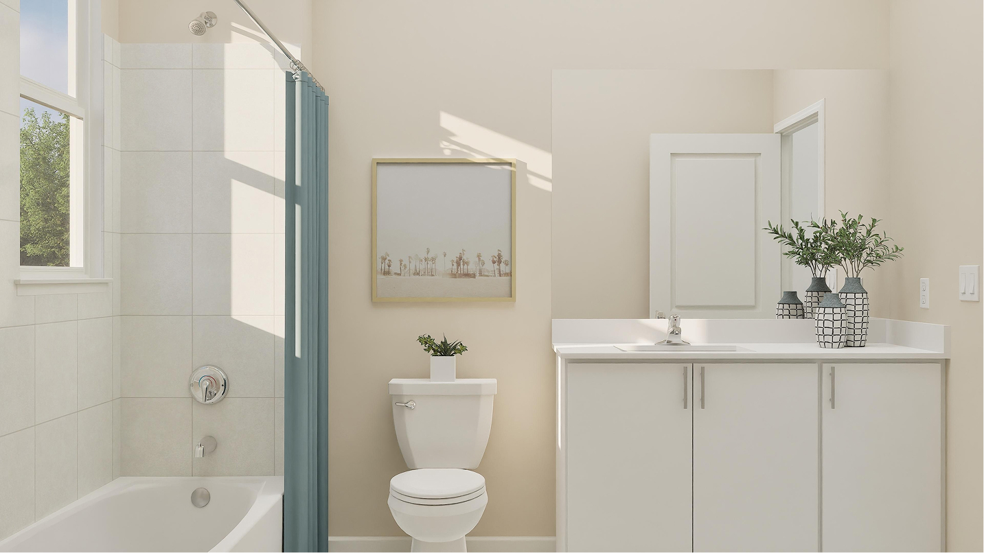 On the first floor of this new two-story townhome is a spacious and flexible open plan that blends the kitchen, living and dining areas to maximize interior space. On the second level are two secondary bedrooms and a spacious owner’s suite that features a full bathroom and walk-in closet. A rear two-car garage is ready for any parking or storage needs.