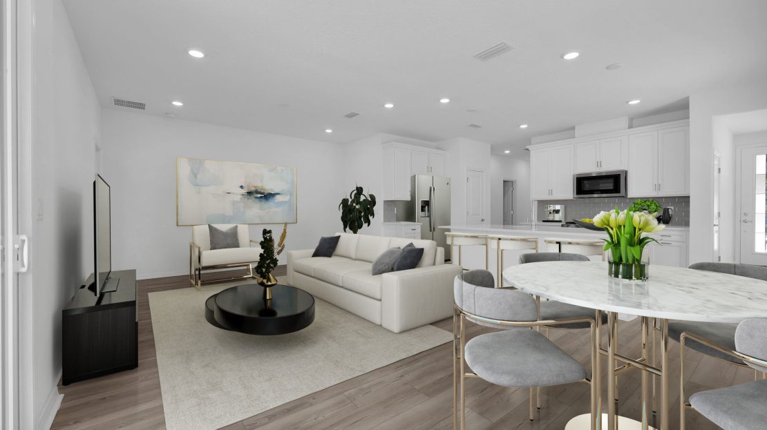 The Drayton at The Preserve at Bannon Lakes features 4 bedrooms, 2 bathrooms, and a 2-car garage. Its open-concept layout connects the kitchen, dining, and living areas, perfect for family gatherings and entertaining. Relax on the covered lanai or the inviting front porch. Thoughtful design details throughout make everyday living comfortable and stylish in this beautiful new home.