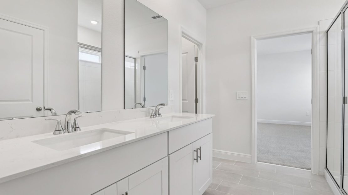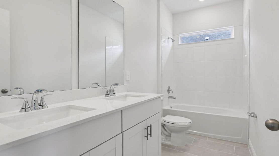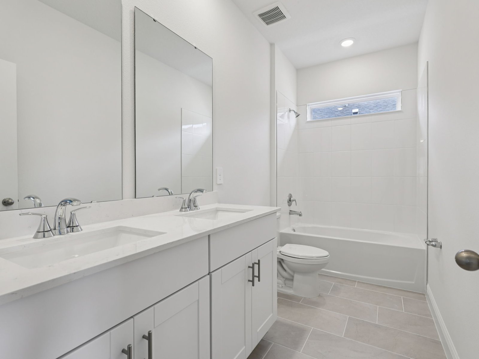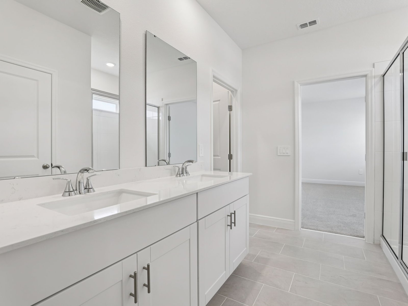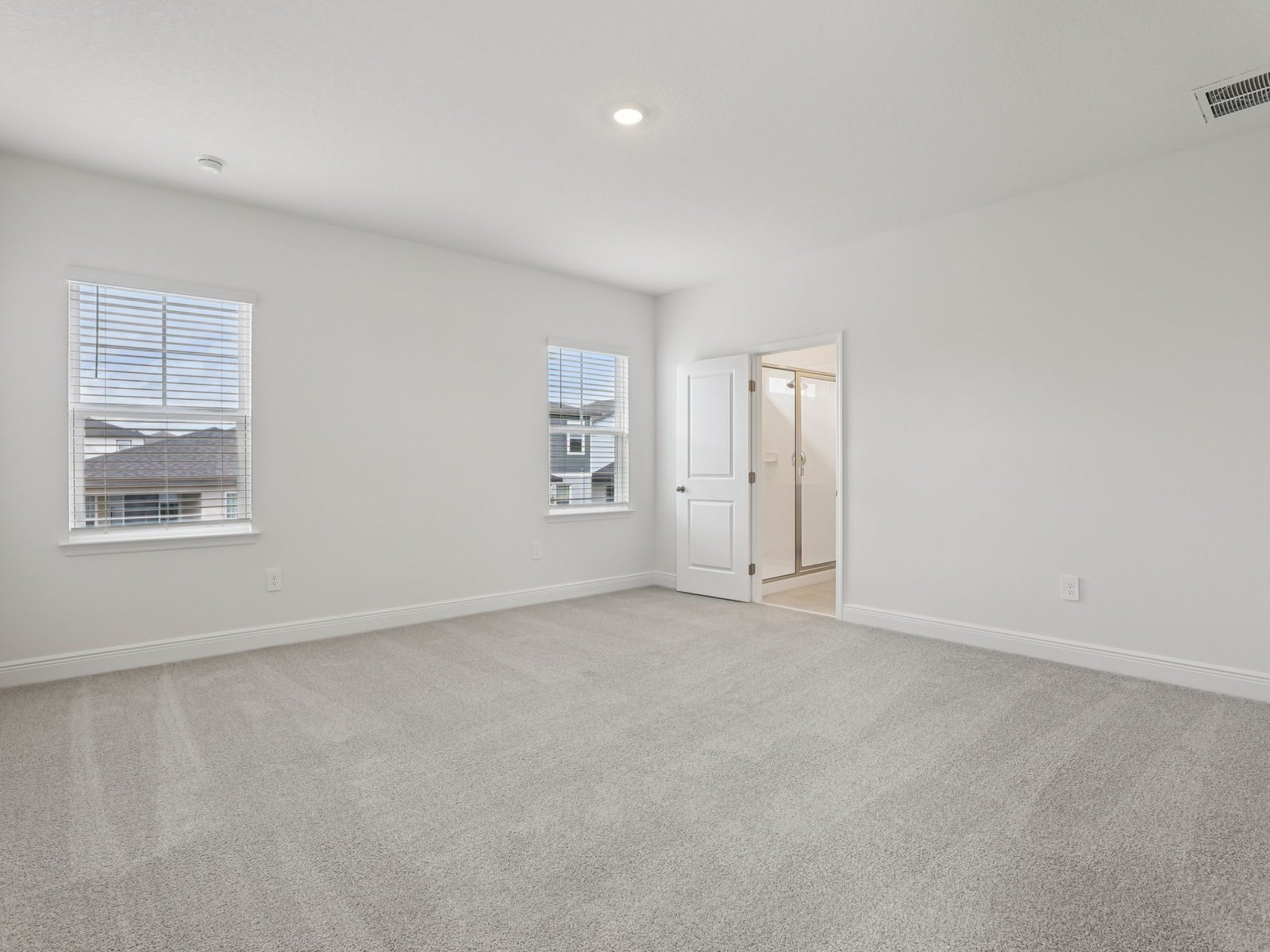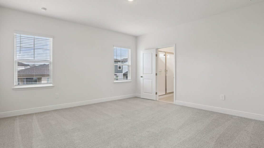 Use this home’s flex room as a formal dining room, home office, or workout space. The second-floor primary suite is equipped with dual sinks and a spacious walk-in closet.