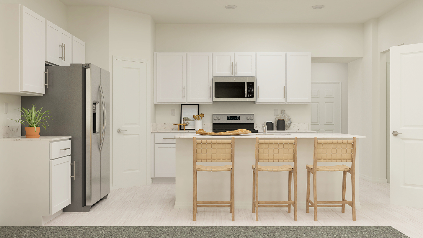 This new two-story home is ready for the way families live today. A versatile flex space at the foyer is perfect for a home office or studio, while an open-concept layout blends the kitchen, living and dining areas with easy access to an inviting lanai, ready for outdoor entertainment and more. All three bedrooms can be found on the second floor, including a lavish owner’s suite that offers direct access to a full bathroom and walk-in closet. A two-car rear garage completes the home.
