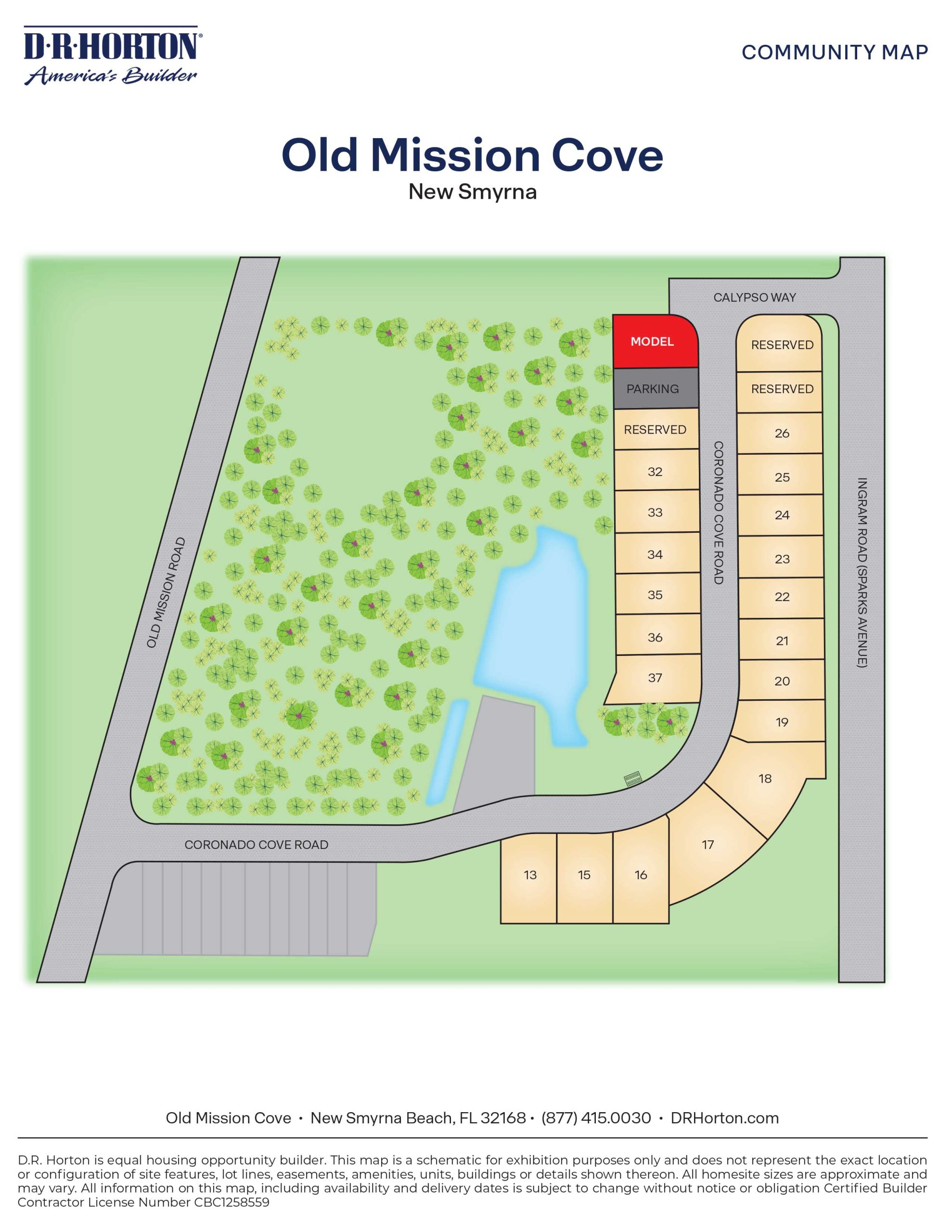 Located in splendid New Smyrna Beach, FL in Volusia County, DR Horton presents the breathtaking Old Mission Cove . These amazing new homes are situated in a new construction community & are offered in 2 distinct models: Cali,Hayden. You will have all the space you want, with square footage of each new home varying from 1828 to 2601 sqft, with 4 to 5 bedrooms and 2 to 3 bathrooms. Residents will have access of an assortment of outstanding comforts, including: Stainless Steel Appliances;