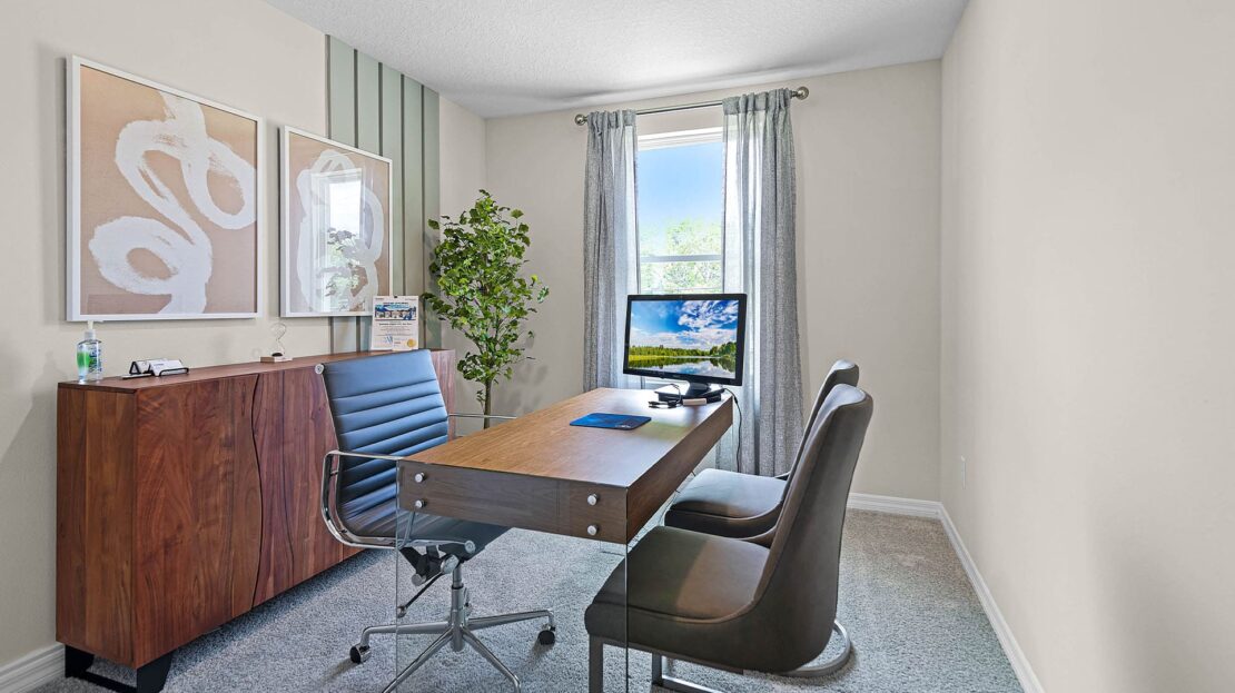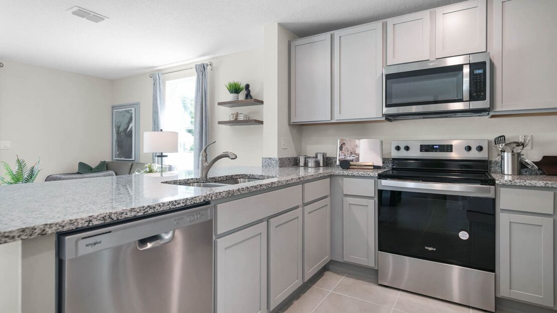 Introducing the Pearson – where modern elegance meets everyday functionality in this stylish townhome. Located in Sandalwood in New Smyrna Beach, Florida. Step into sophistication as you enter through the one-car garage into a spacious and welcoming abode with 1,463 square feet.