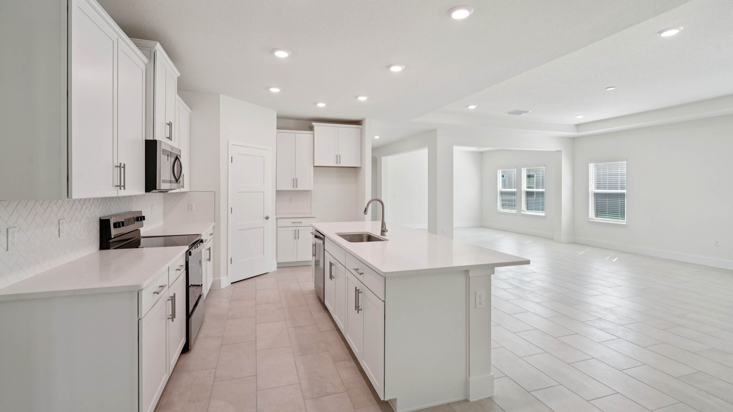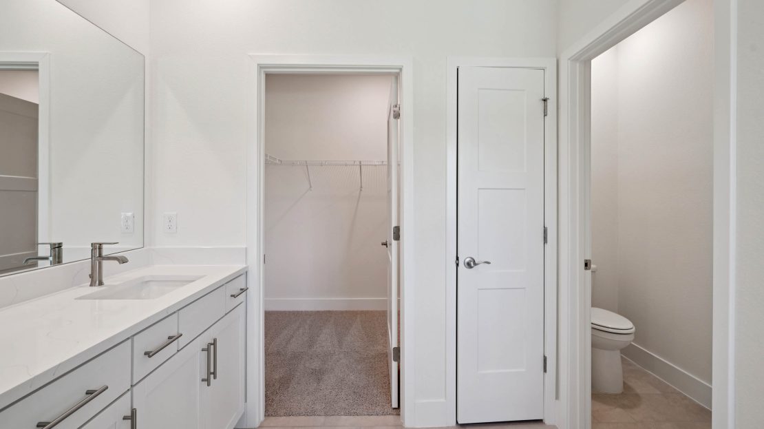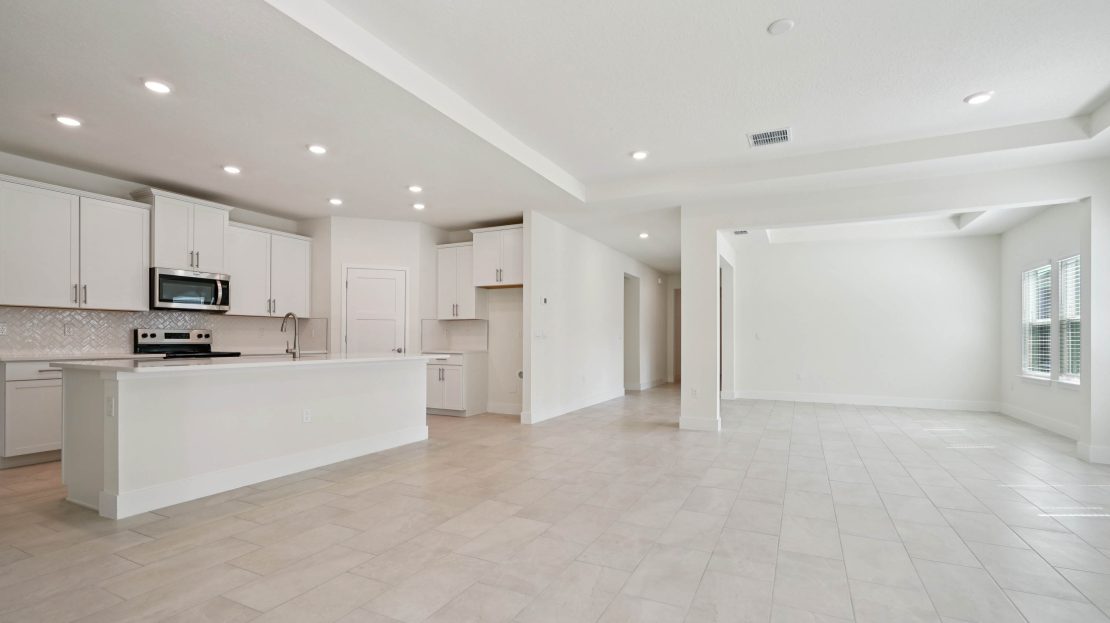 This one-story home features a large great room with a formal dining room and a well-appointed kitchen with a dinette, all of which overlook a spacious covered lanai that is perfect for extending entertaining space outdoors. This single-story plan features two bedrooms that share a jack-and-jill full bathroom and which are located at the front of the home. The multi-gen living space is located beyond the powder bath and laundry room. Bedroom 1 with an ensuite bath, is located on the back of the home for privacy, offering beautiful views of the backyard. This home includes a stainless-steel range, microwave, and dishwasher. Pictures, photographs, colors, features, and sizes are for illustration purposes only and will vary from the homes as built. Home and community information including pricing, included features, terms, availability and amenities are subject to change and prior sale at any time without notice or obligation. CRC057592.