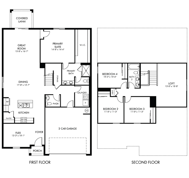 The Orchid’s first-floor primary suite ensures everyone has their own private space. The second floor offers a spacious loft that can be used for work, homework and hobbies. The open kitchen offers a large work island.